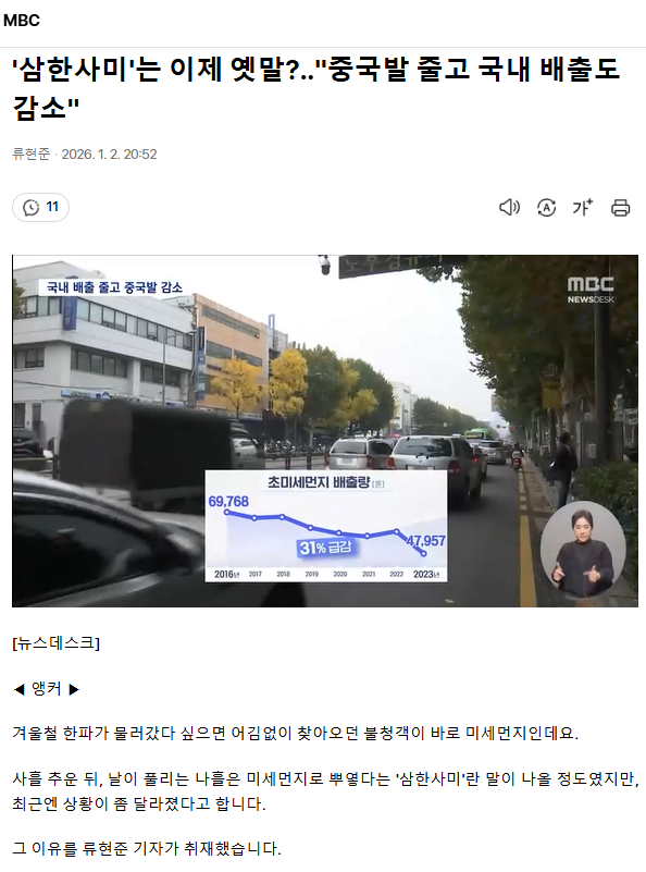 '삼한사미'는 이제 옛말?‥ "중국발 줄고 국내 배출도 감소"