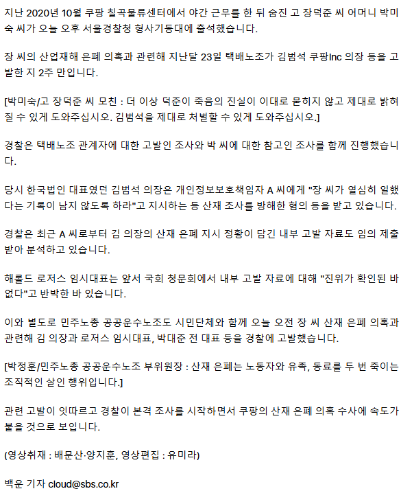 "쿠팡 김범석 처벌 도와달라"… '산재은폐 의혹' 수사 속도
