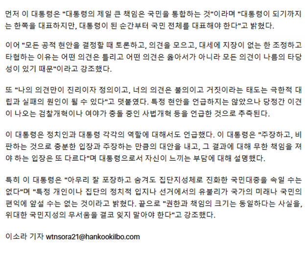 李대통령 "집권 세력 됐다고 마음대로 해선 안 돼… 권한만큼 책임도 따라"