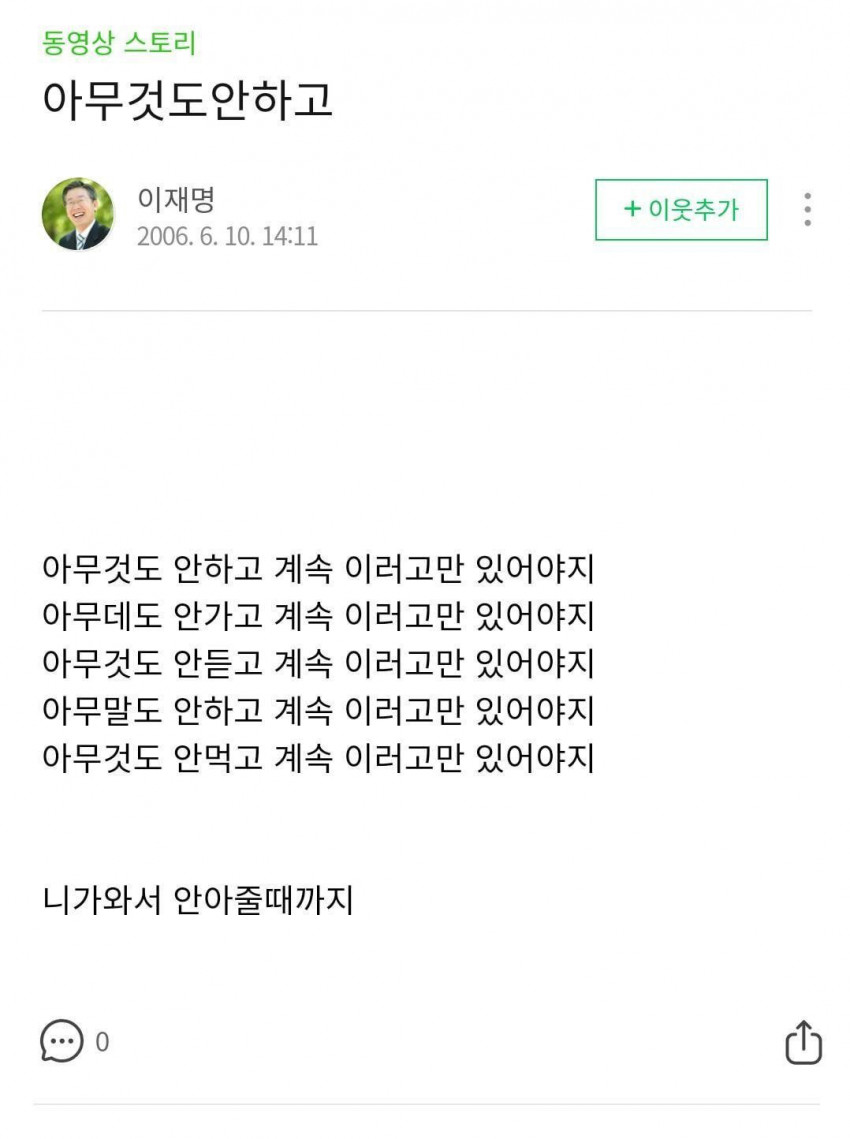 자유게시판 아무것도 안하고 계속 이러고만 있어야지 - 니가와서 안아줄때까지 / 이재명