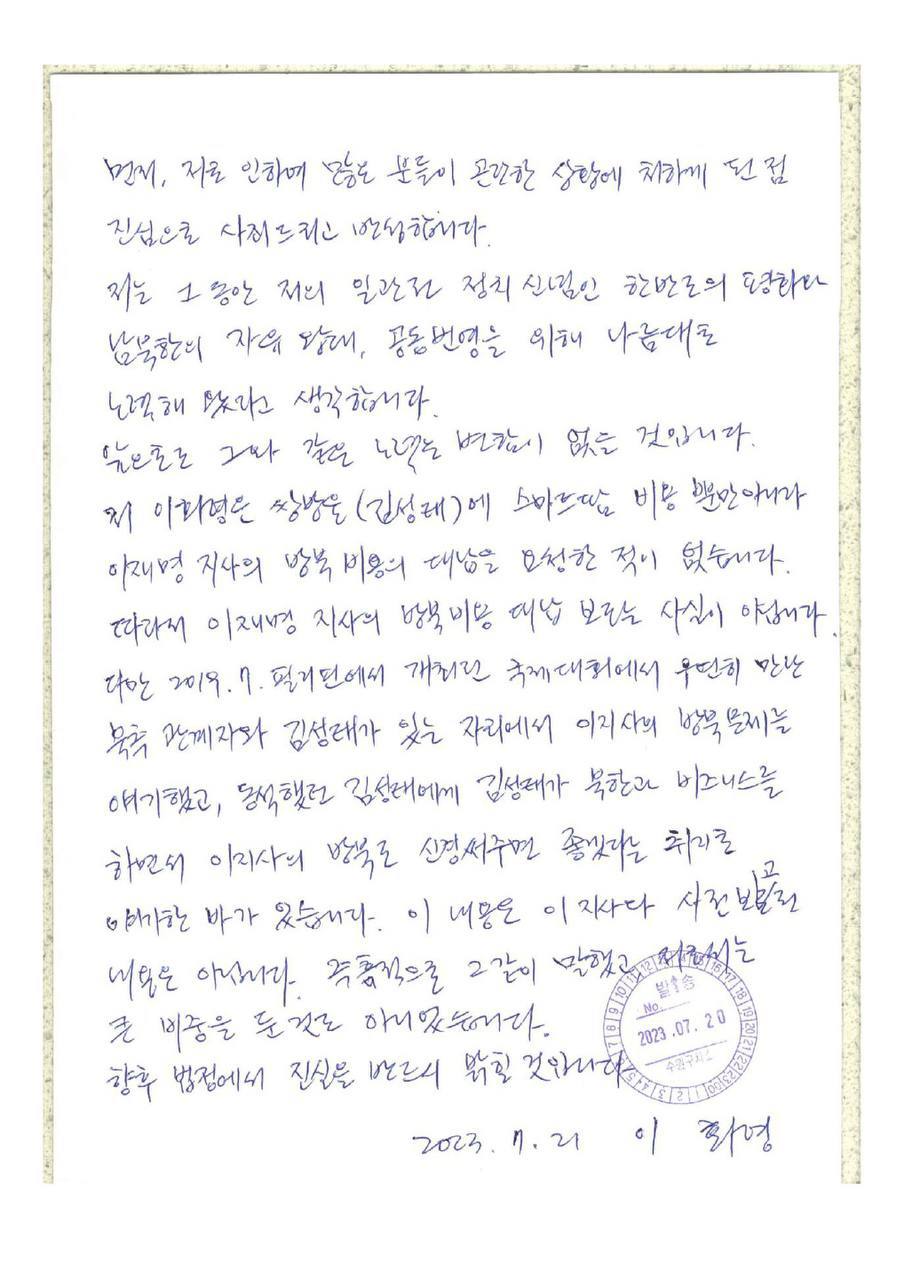 자유게시판 이화영 옥중서신 원본 공개