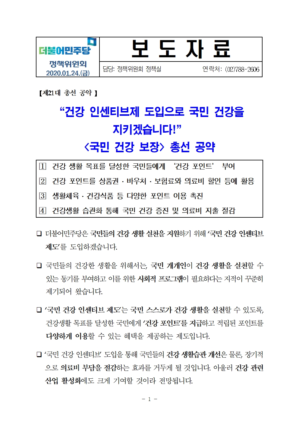 200124_보도자료(정책위)_국민_건강_인센티브_총선공약_수정.hwp