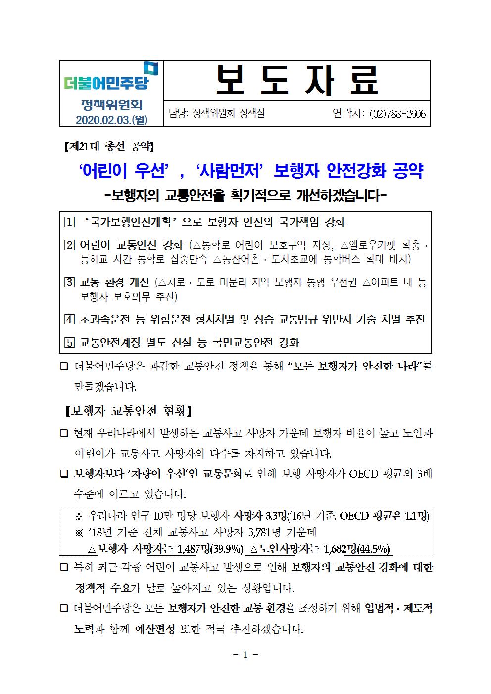 200203_보도자료(정책위)_보행자_교통안전_총선_공약(최종).hwp