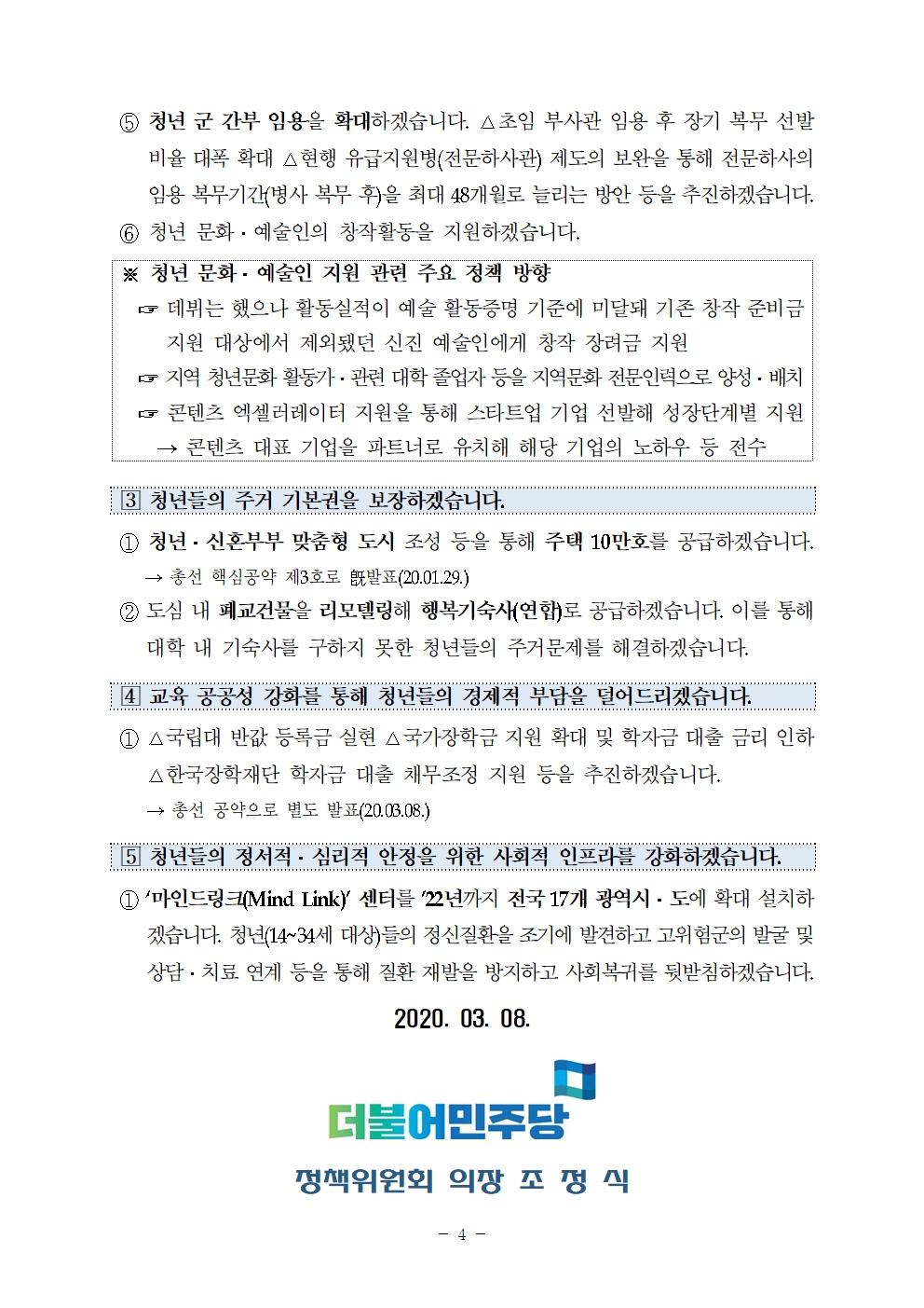 200308_보도자료(정책위)_청년정책_총선공약.hwp