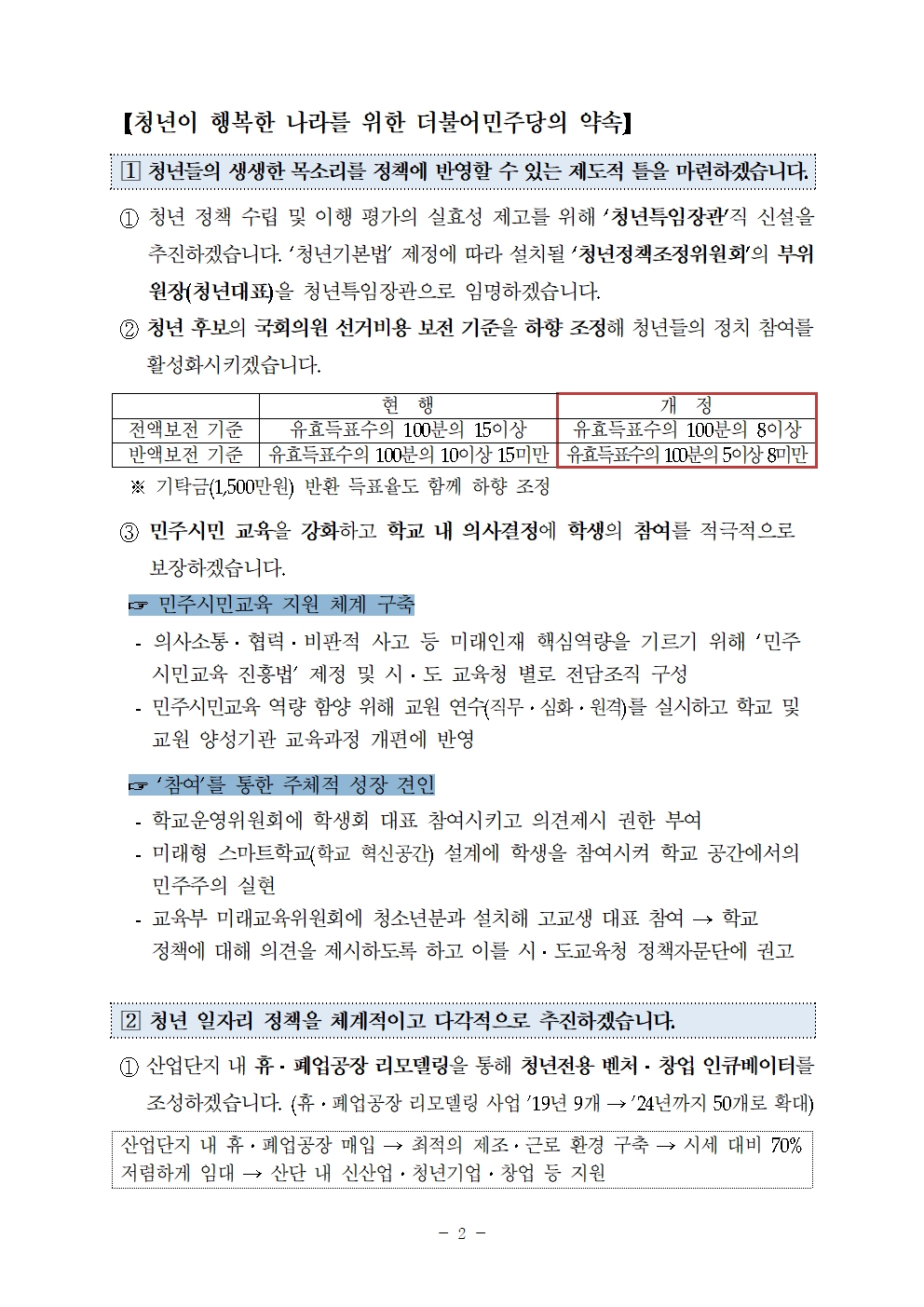 [총선 공약] "청년이 행복한 나라! 청년의 희망을 키우겠습니다!"