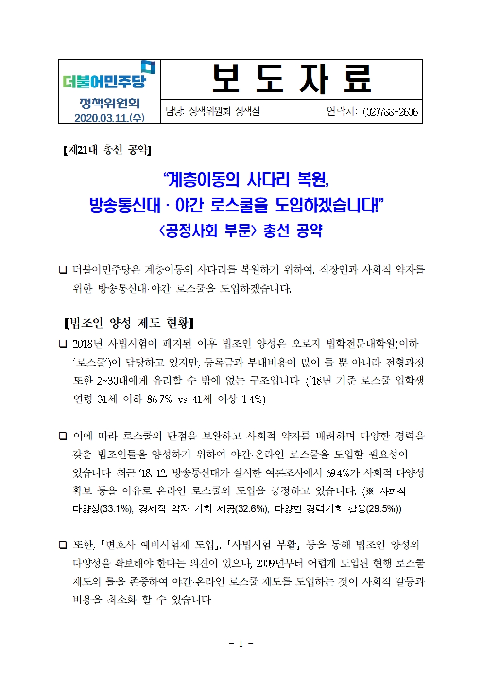 200311_보도자료(정책위)_방송통신대_야간로스쿨_도입.hwp