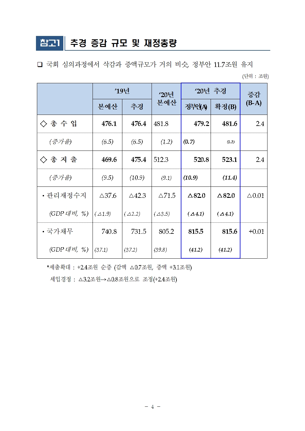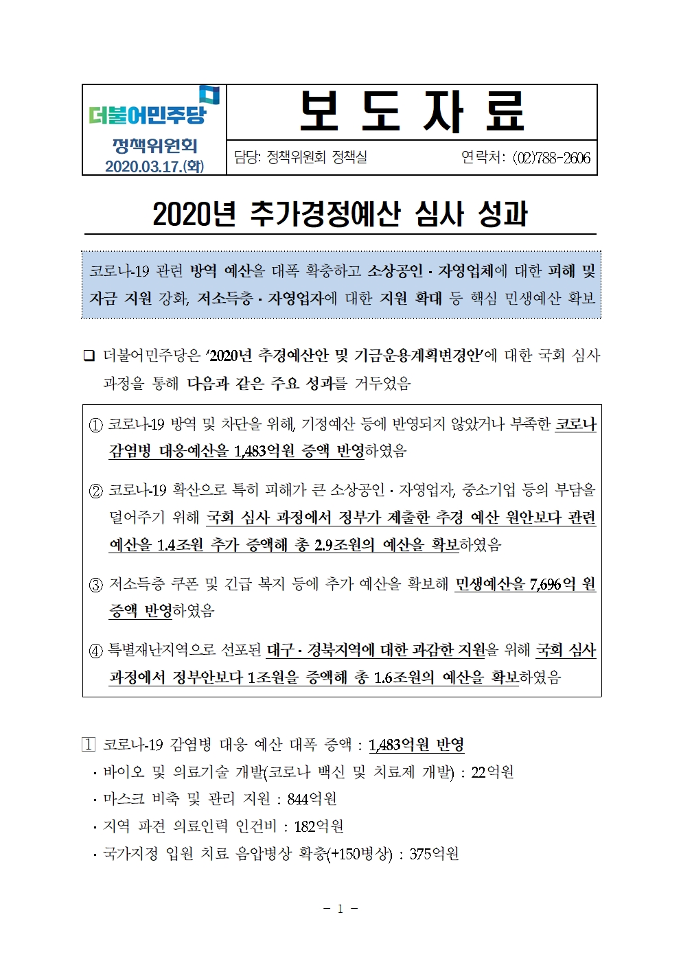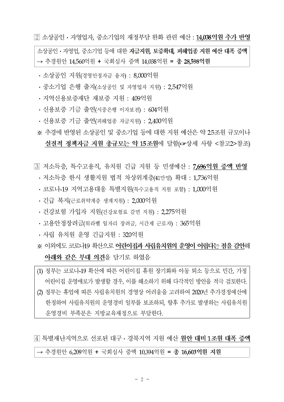 코로나19 대응 2020 추가경정예산 심사 성과