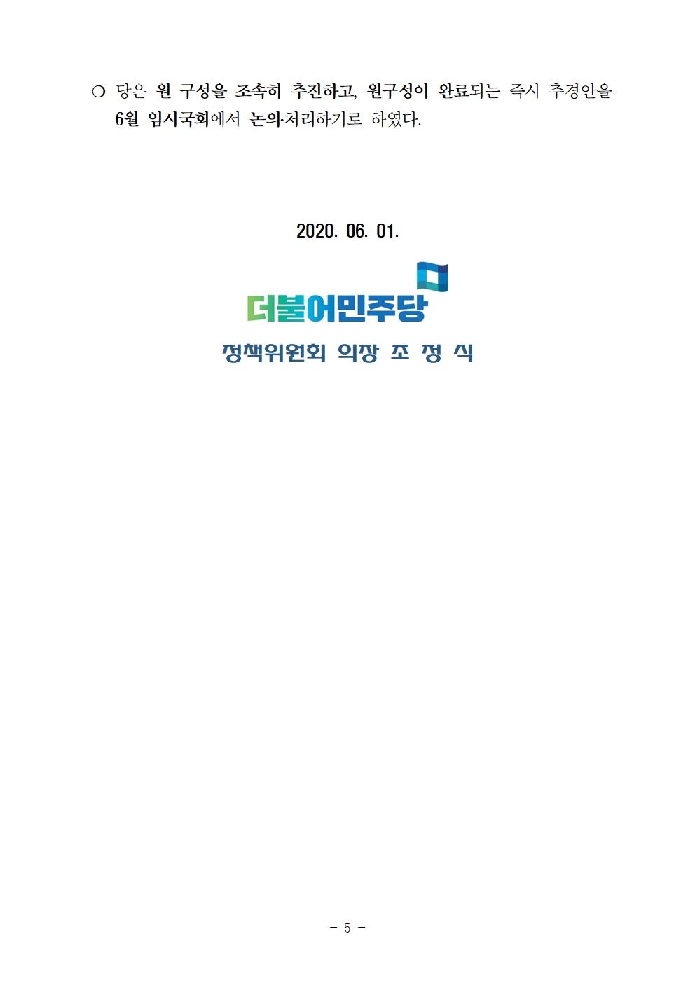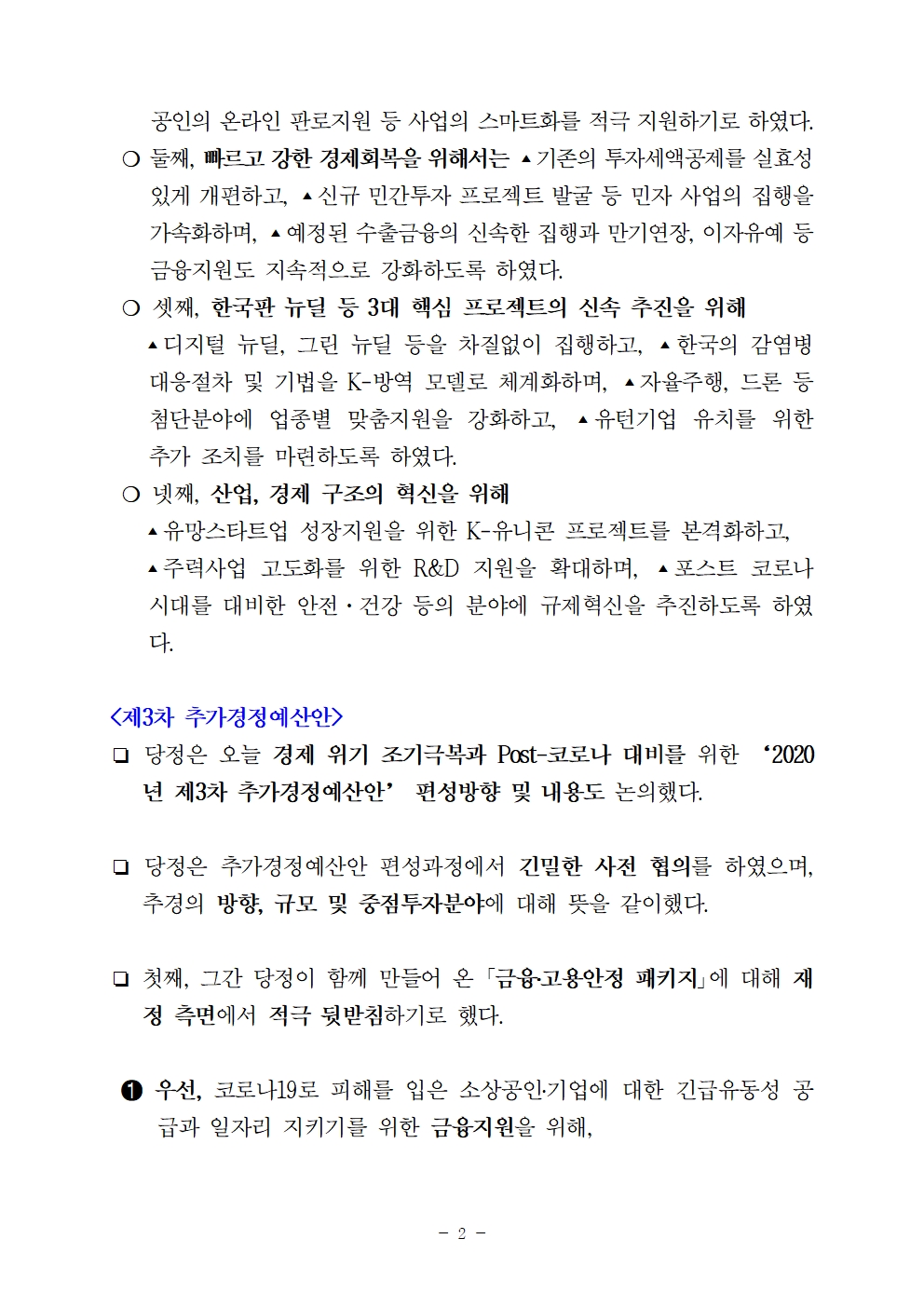 2020 하반기 경제정책방향 및 3차 추경 당정협의 결과