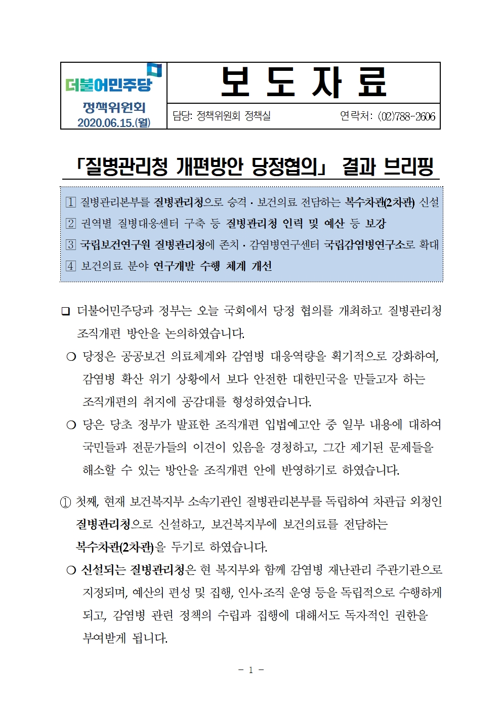 200615_(보도자료)질병관리청_개편방안_당정협의.hwp