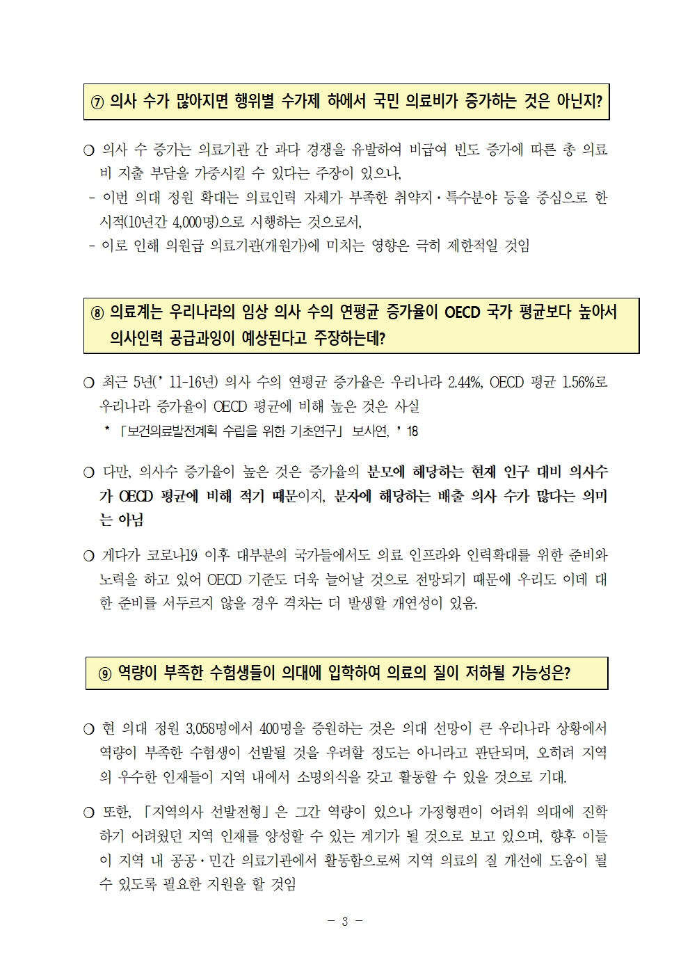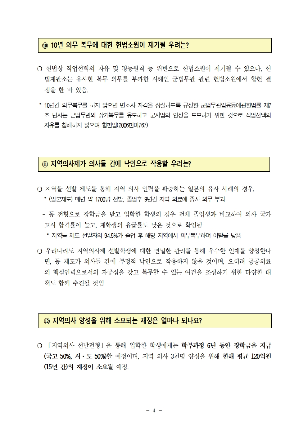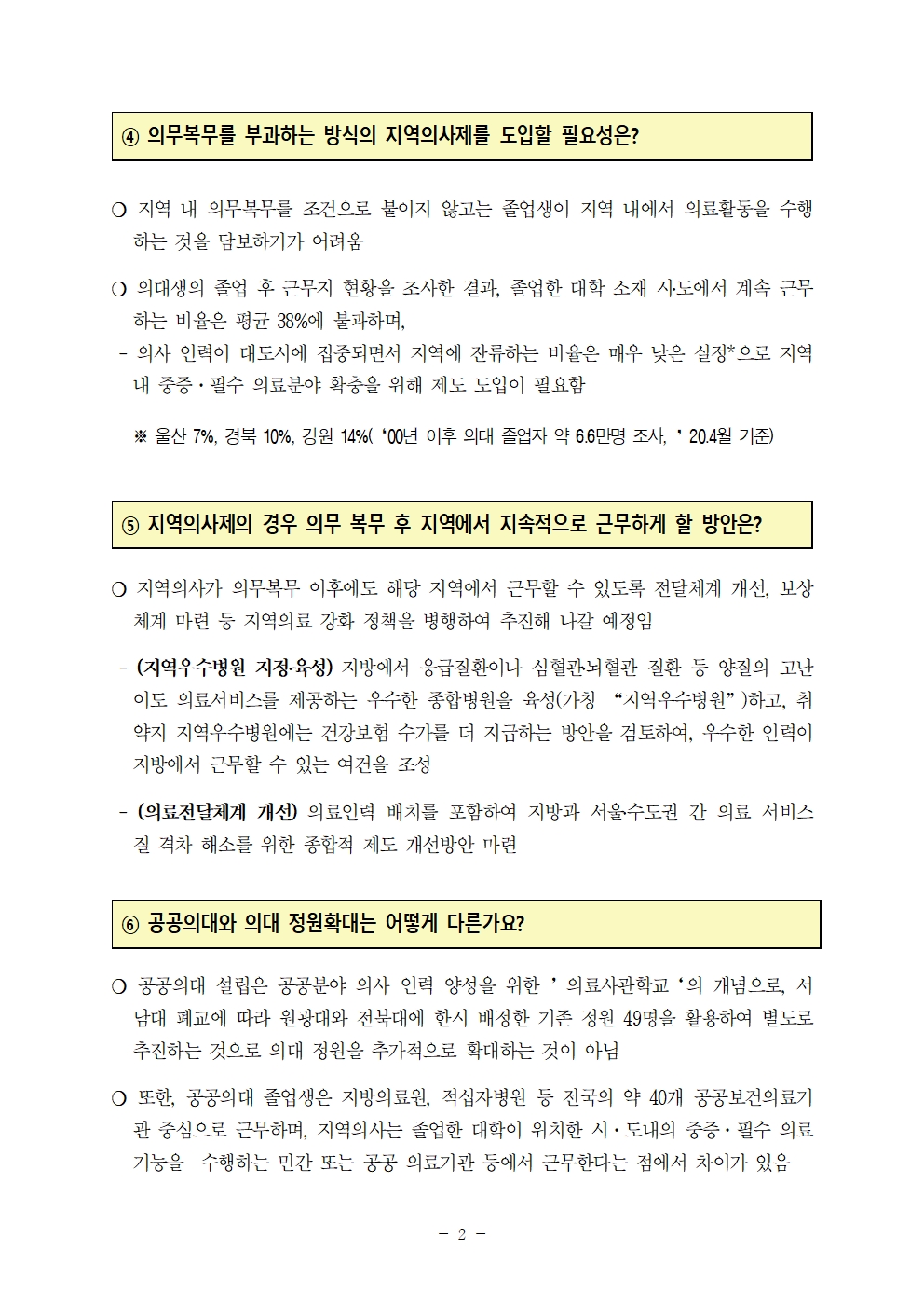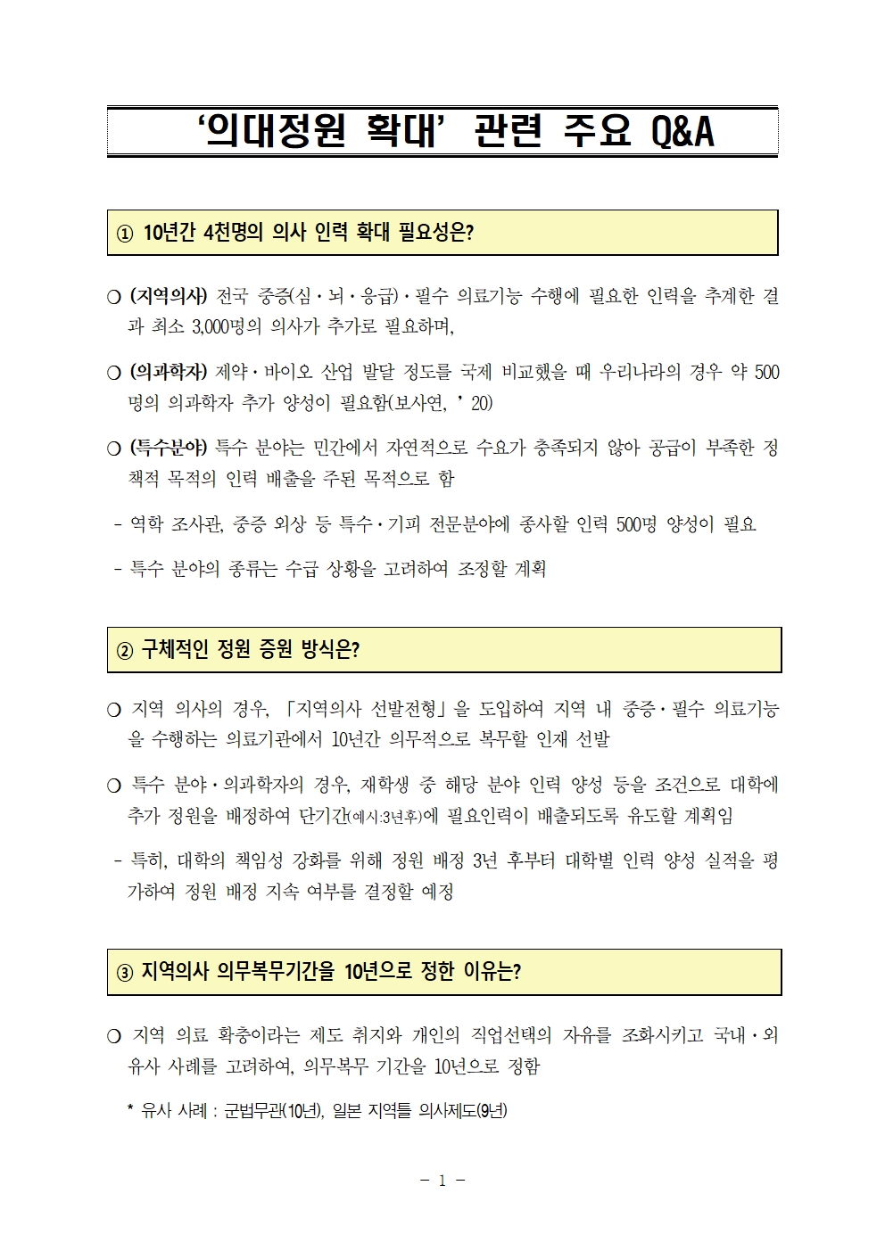 공공의료 인력확충(의대정원확대 및 공공의대 설립 추진방안) 관련 QnA