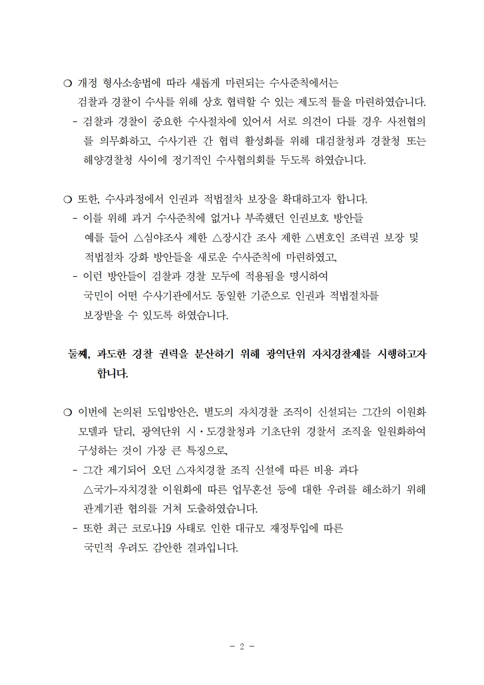 국민을 위한 권력기관 개혁 당정청 협의 결과 브리핑