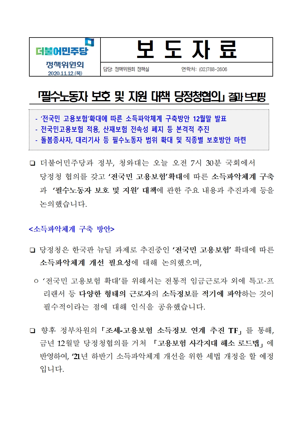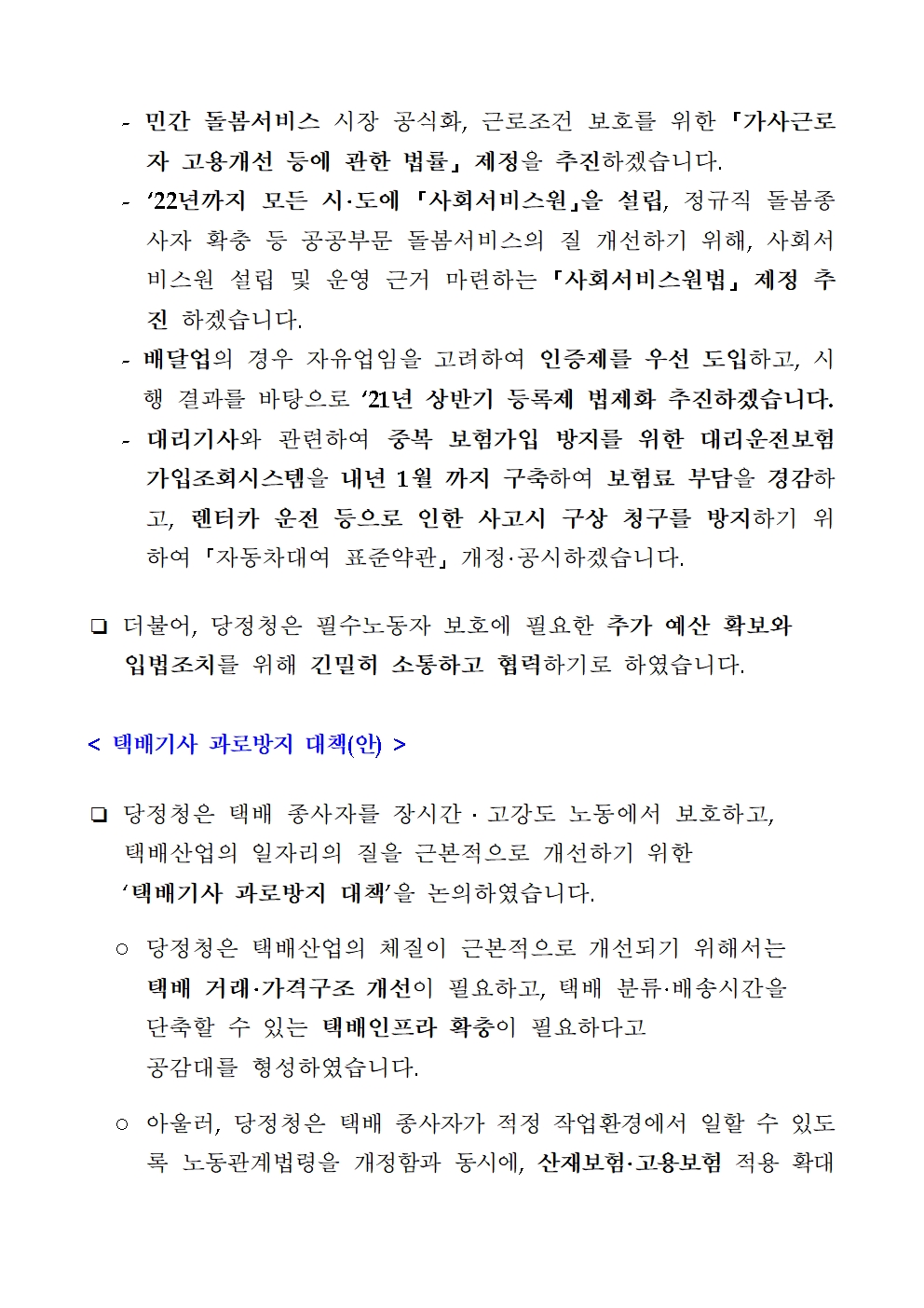 필수노동자 보호 및 지원 대책 당정청 협의 결과