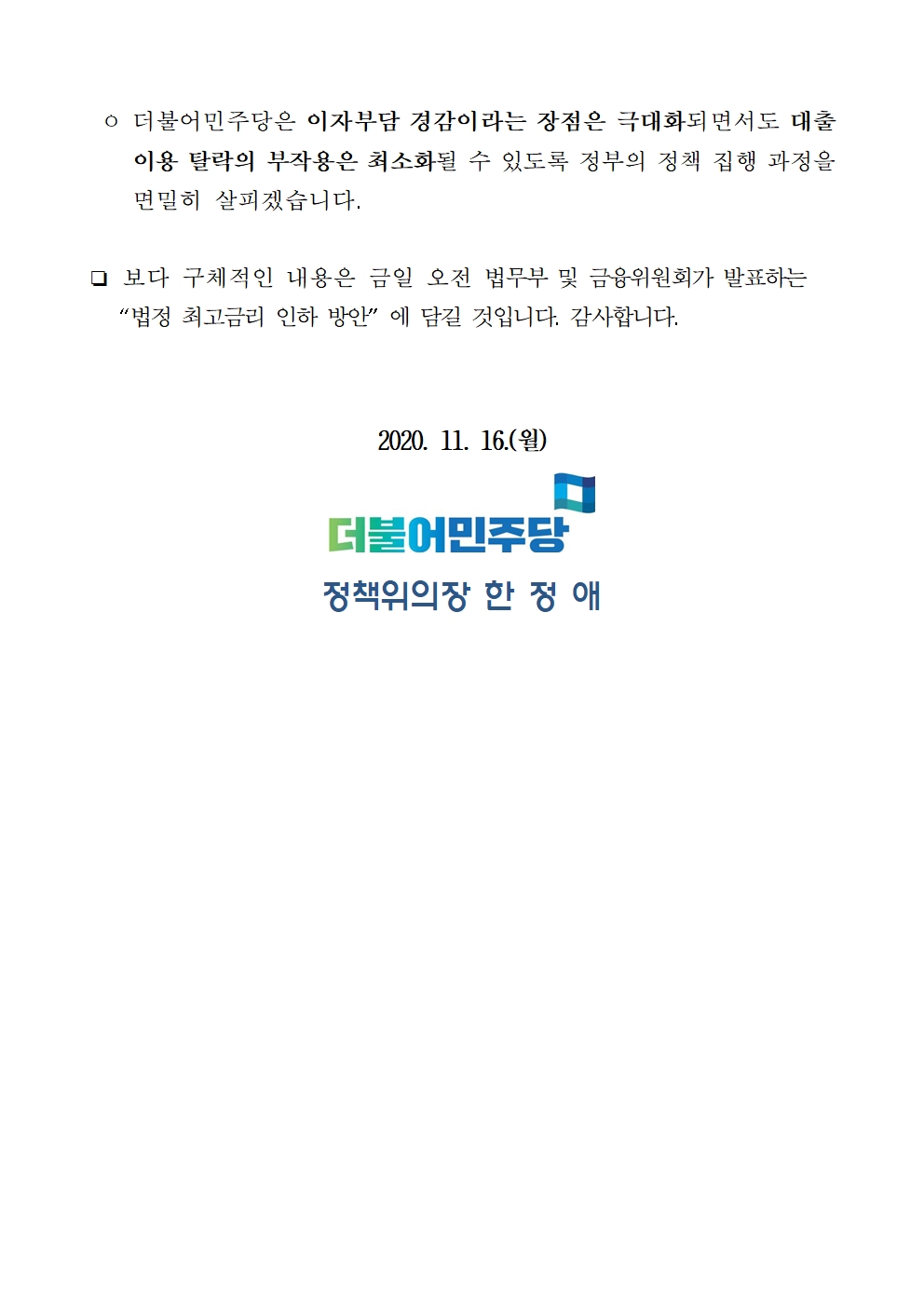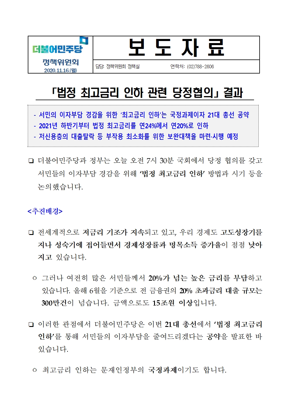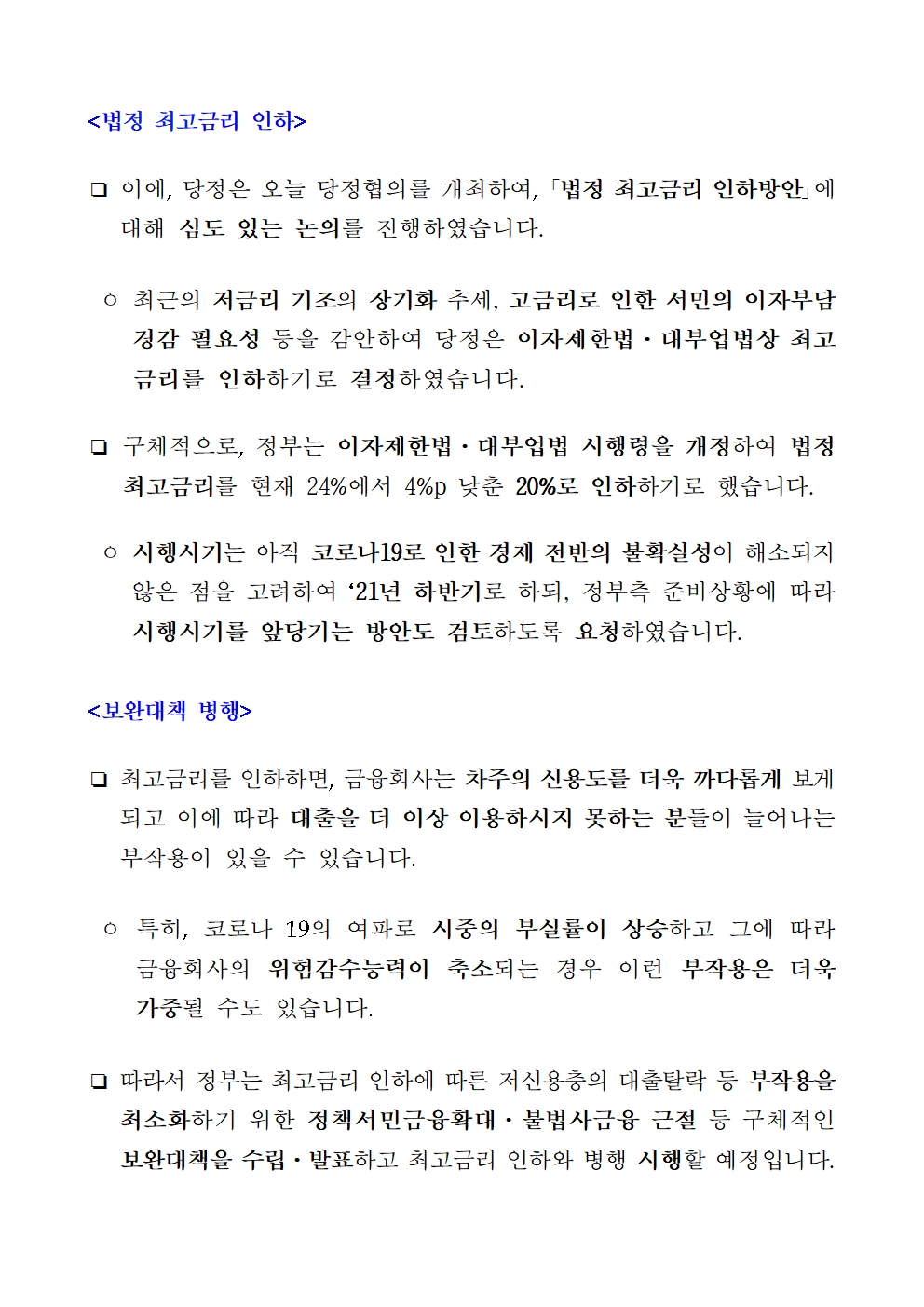 201116_(보도자료)최고금리_인하_당정협의_결과.hwp