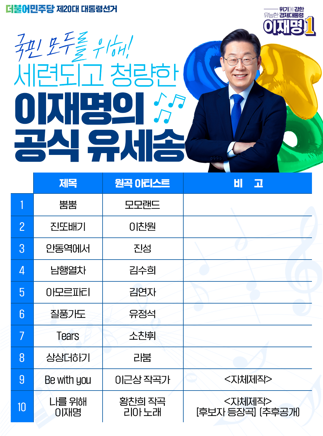 [제20대 대통령선거] 이재명 대통령 후보 공식 유세곡 공개!!