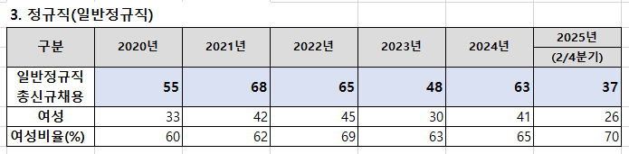 <정규직 여성 채용 현황>