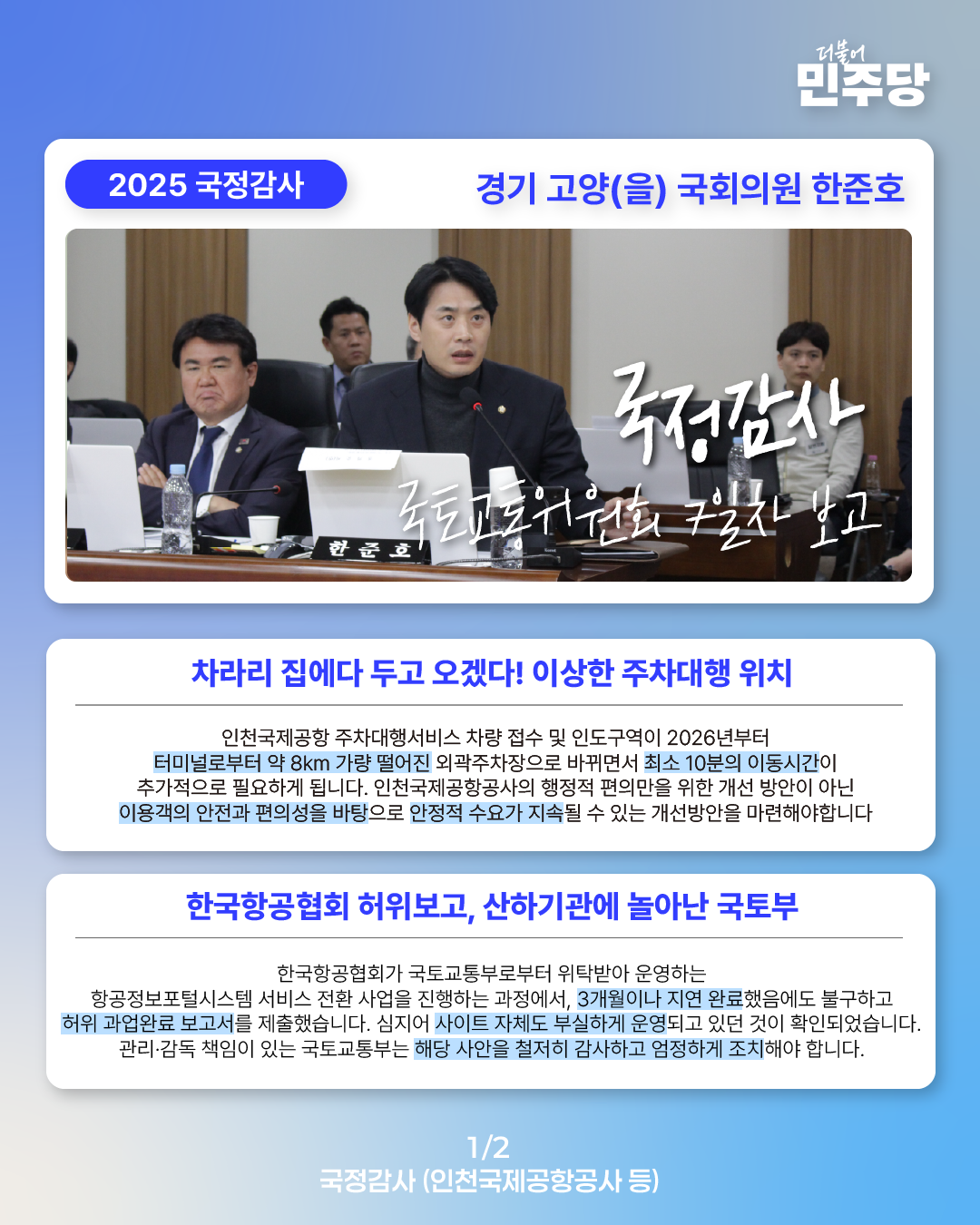 [국회의원 한준호 2025 국정감사 웹자보] 국정감사 7일차 보고