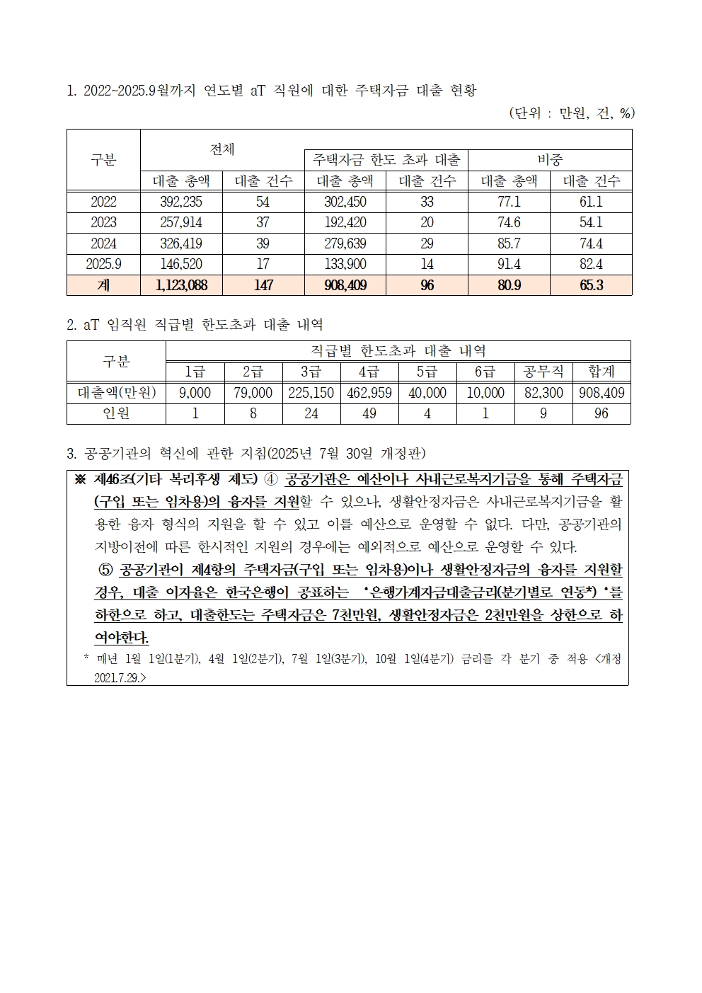 [윤준병 의원 국정감사 보도자료] aT, 정부 지침 무시하며 임직원 주택자금 '특혜 대출' 상시 운영