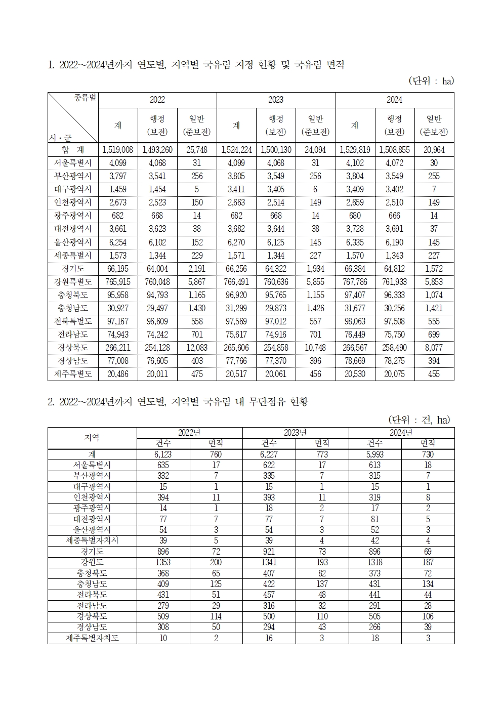 [윤준병 의원 국정감사 보도자료] 30년 이상 장기_국유림 무단점유 절반 무단점유 변상금 수납율도 13% 그쳐