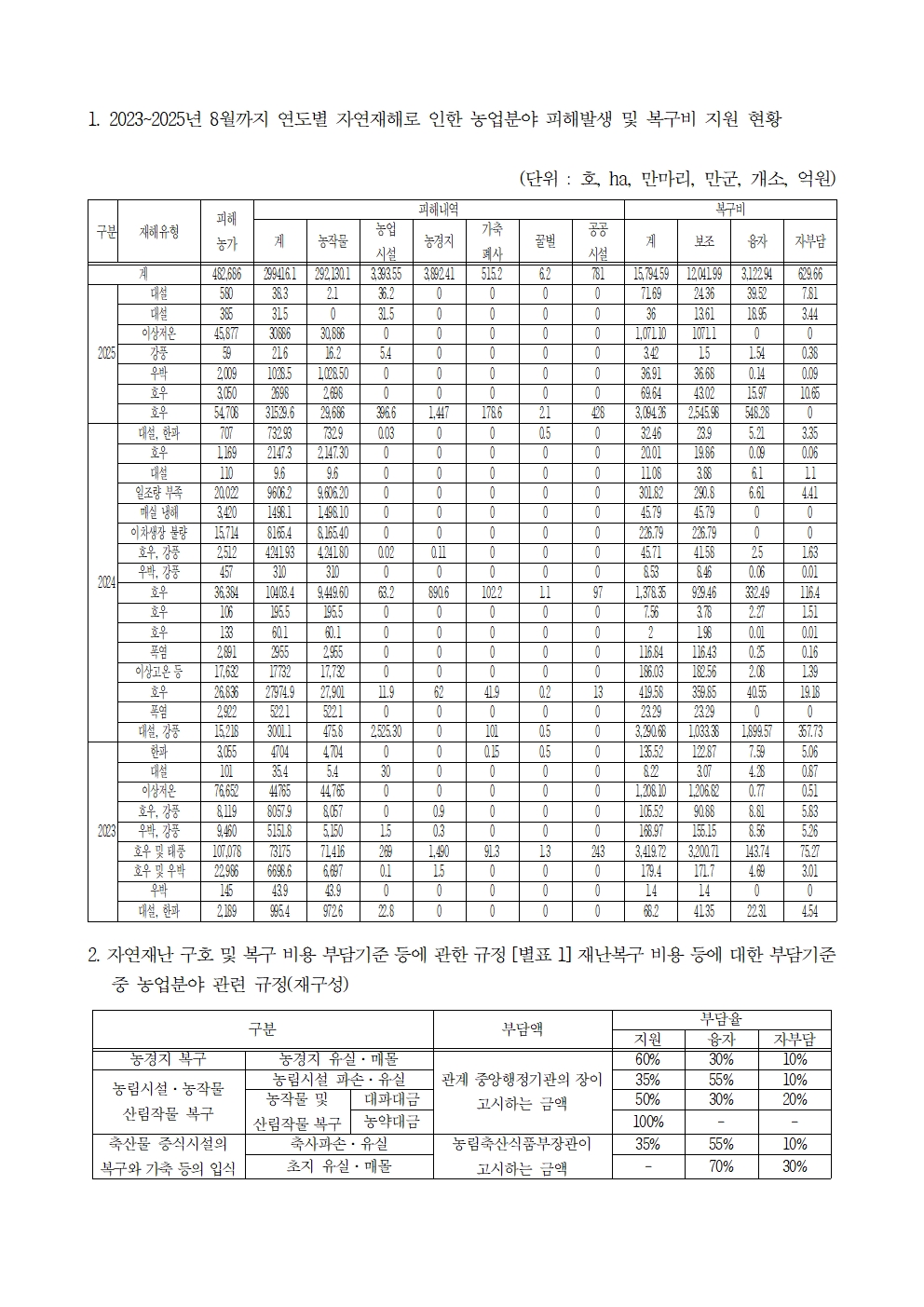 251025 [윤준병 의원 국정감사 보도자료] 3년간 자연재해 피해농가 48만호 피해면적 여의도의 1032배 면적!.hwp