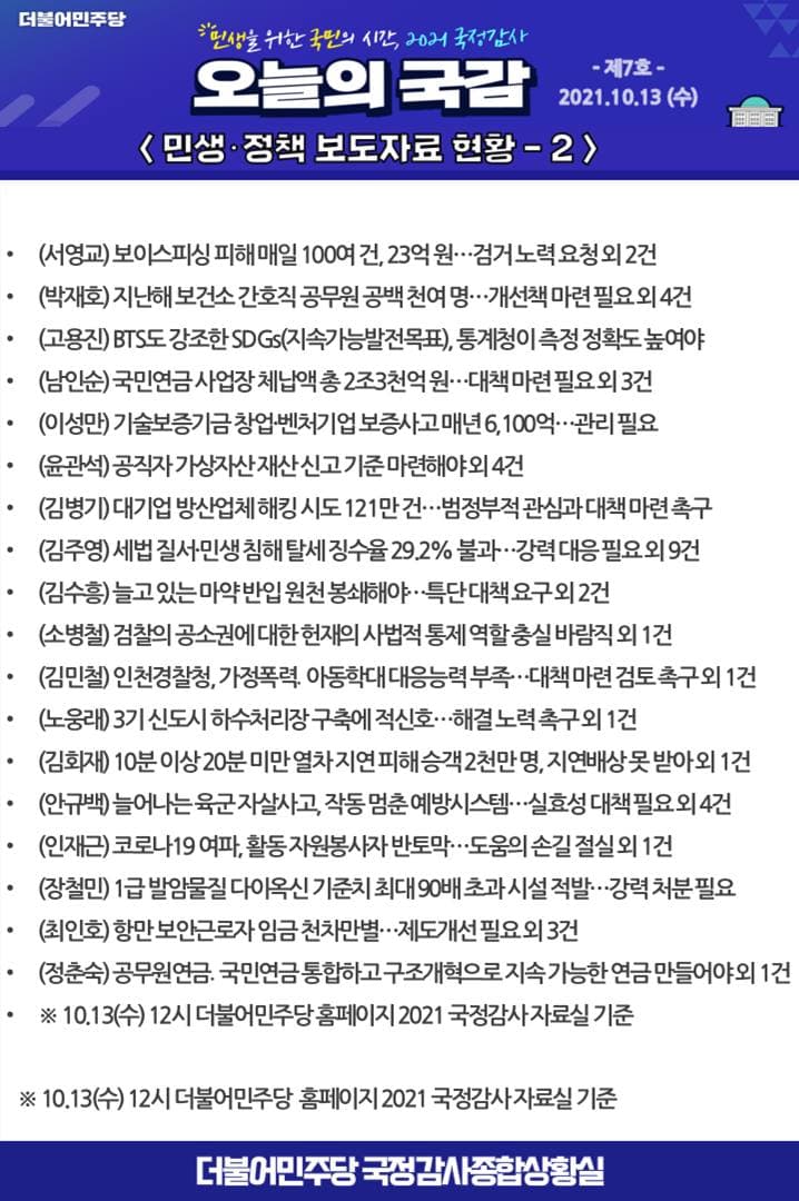 [2021 국정감사] 오늘의 국감 제7호
