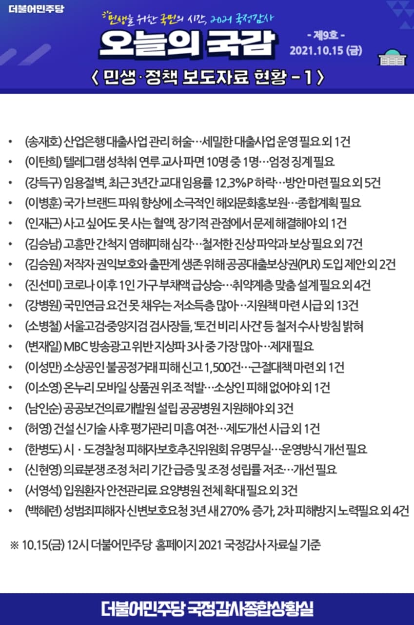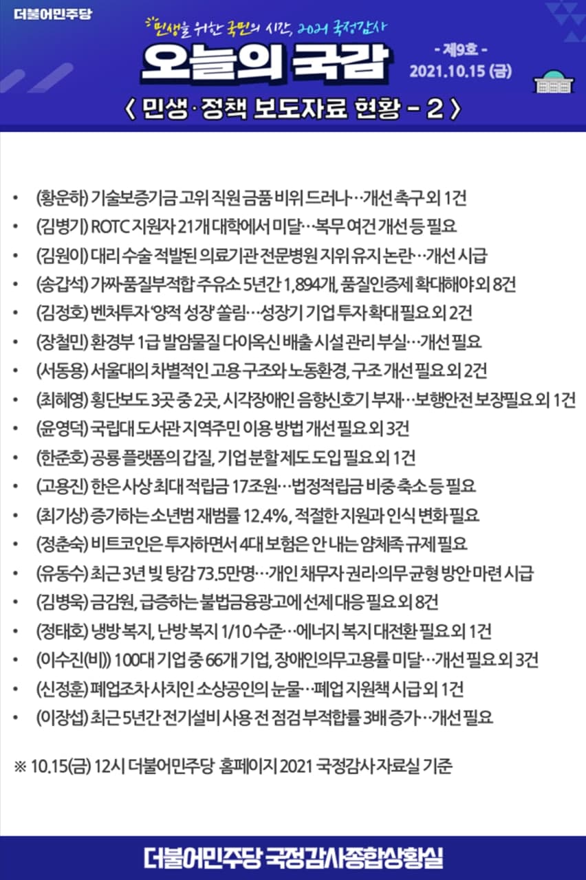 [2021 국정감사] 오늘의 국감 제9호