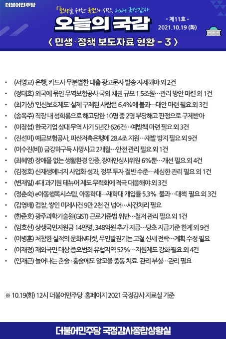 [2021 국정감사] 오늘의 국감 제11호
