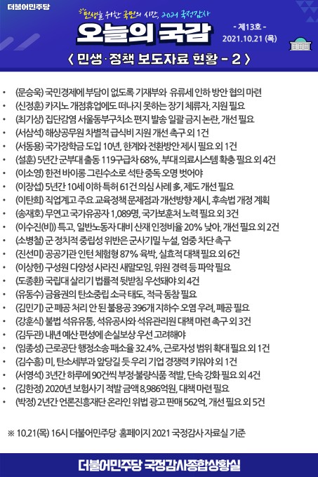 [2021 국정감사] 오늘의 국감 제13호