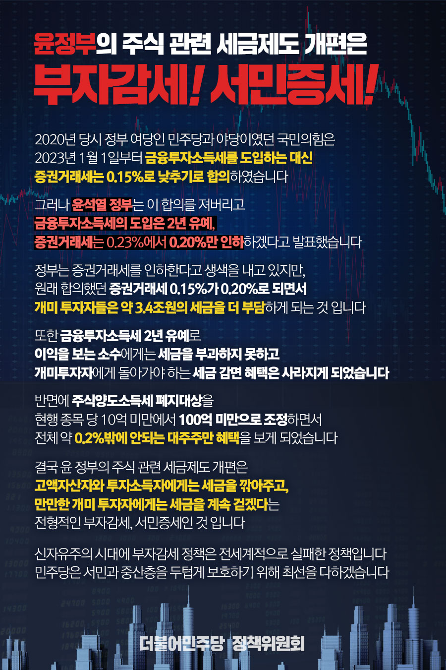 윤정부의 주식 관련 세금제도 개편은 부자감세! 서민증세!