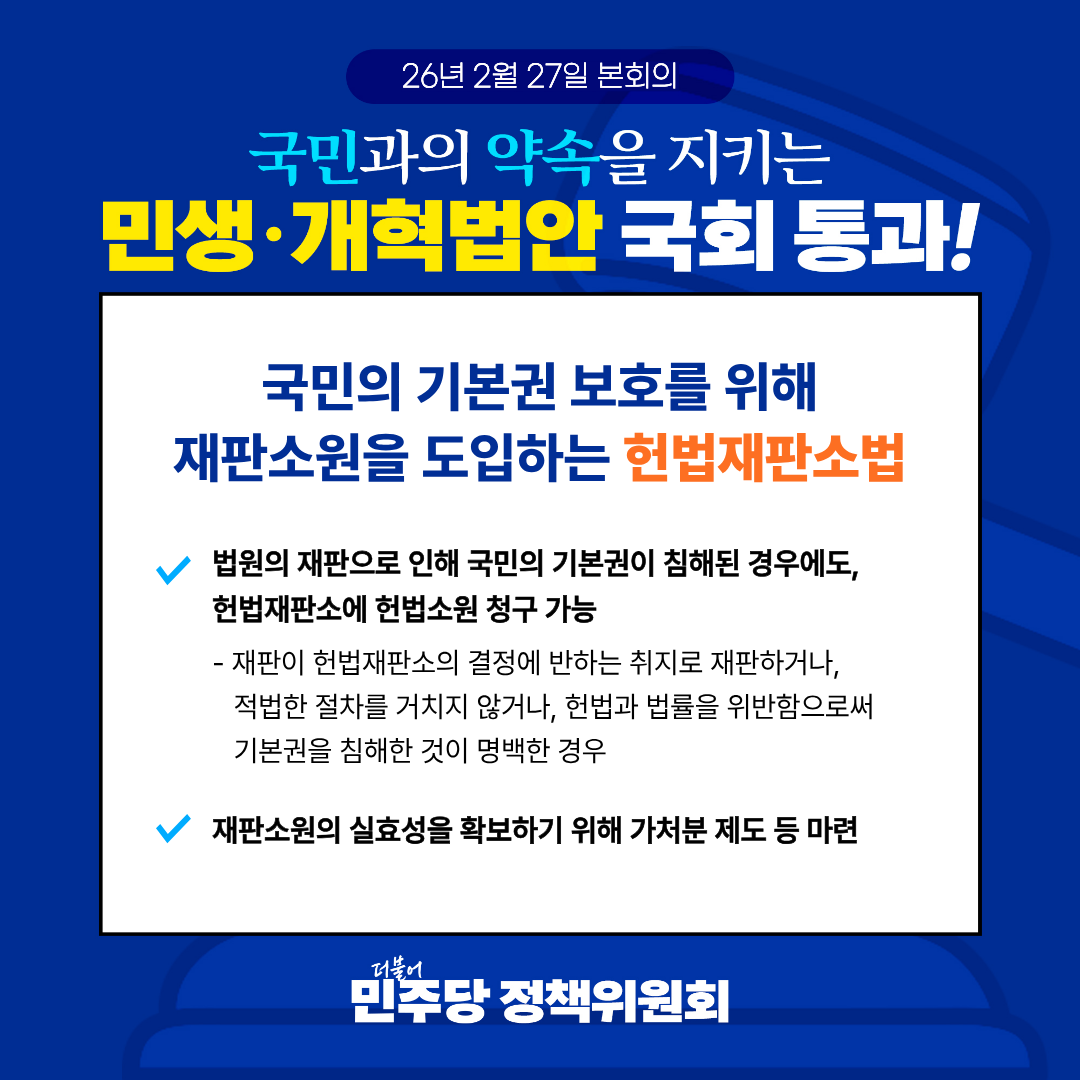 국민과의 약속을 지키는 민생·개혁법안 국회 통과! <26.02.27 본회의>