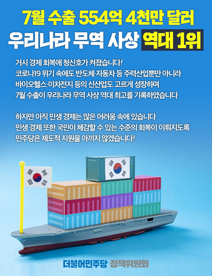 7월 수출, 554억 4천만 달러! 우리나라 무역 사상 역대 1위!
