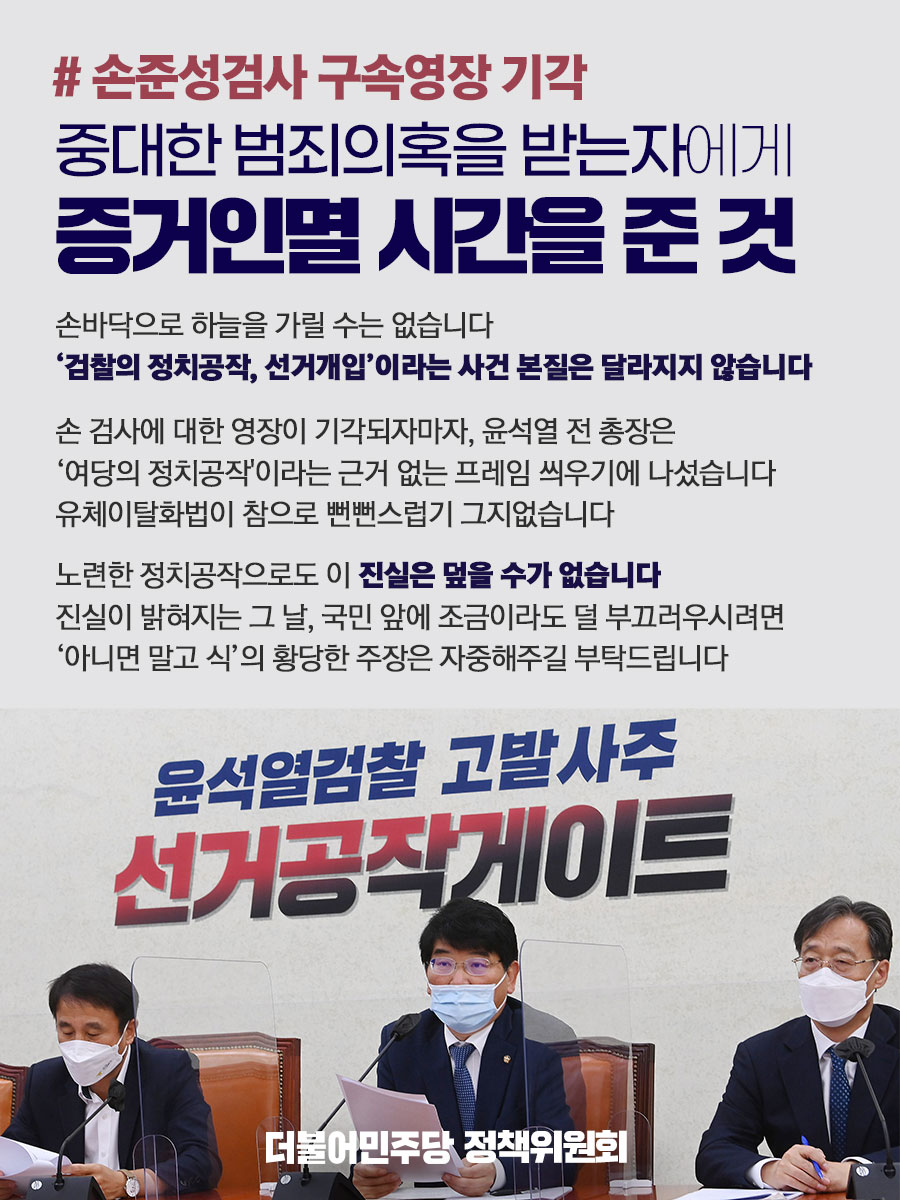 손준성검사 구속영장기각, 중대한 범죄의혹을 받는자에게 증거인멸 시간을 준 것