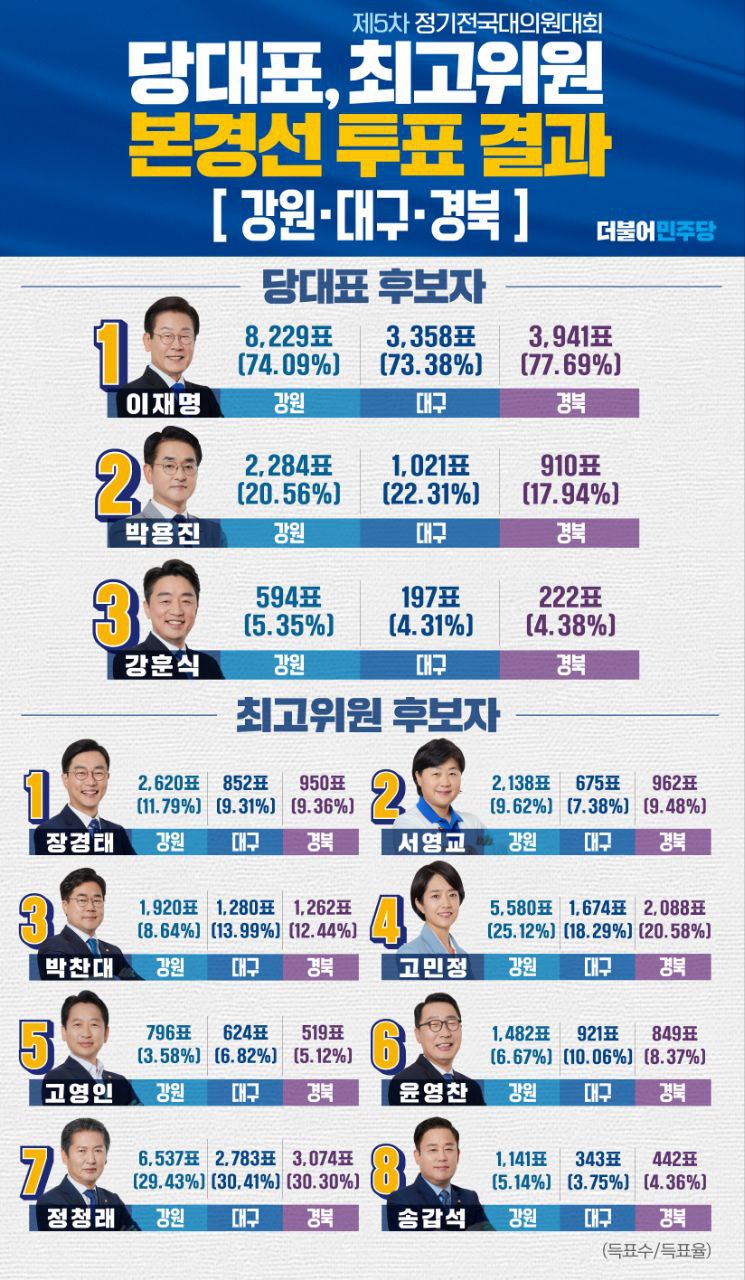 당대표, 최고위원 본경선 투표 결과 [강원,대구,경북]