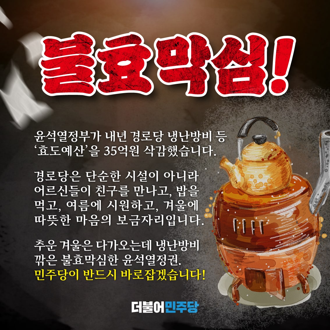 불효막심 '효도예산' 삭감, 민주당이 반드시 바로잡겠습니다!