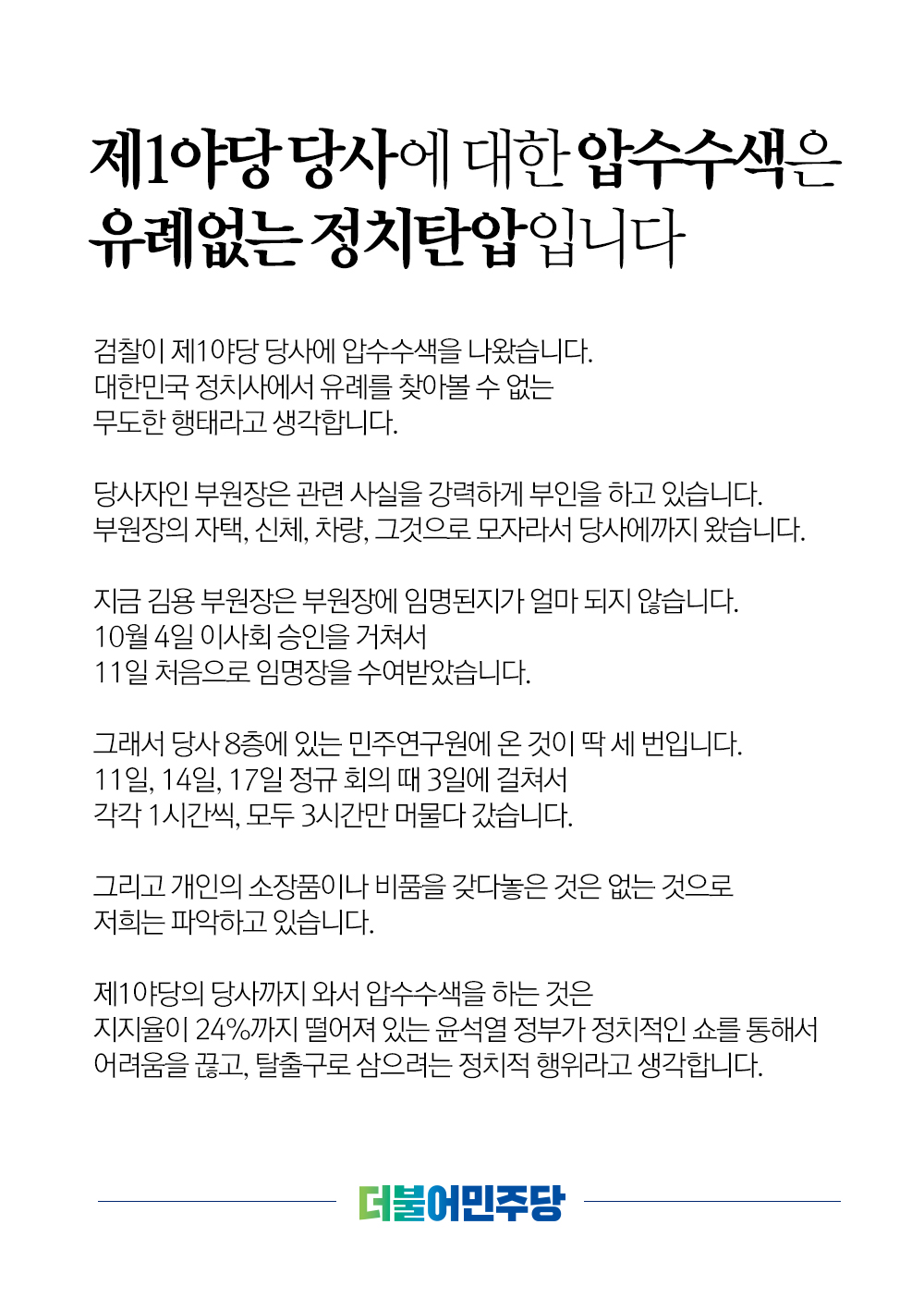 제1야당 당사에 대한 압수수색은 유례없는 정치탄압입니다