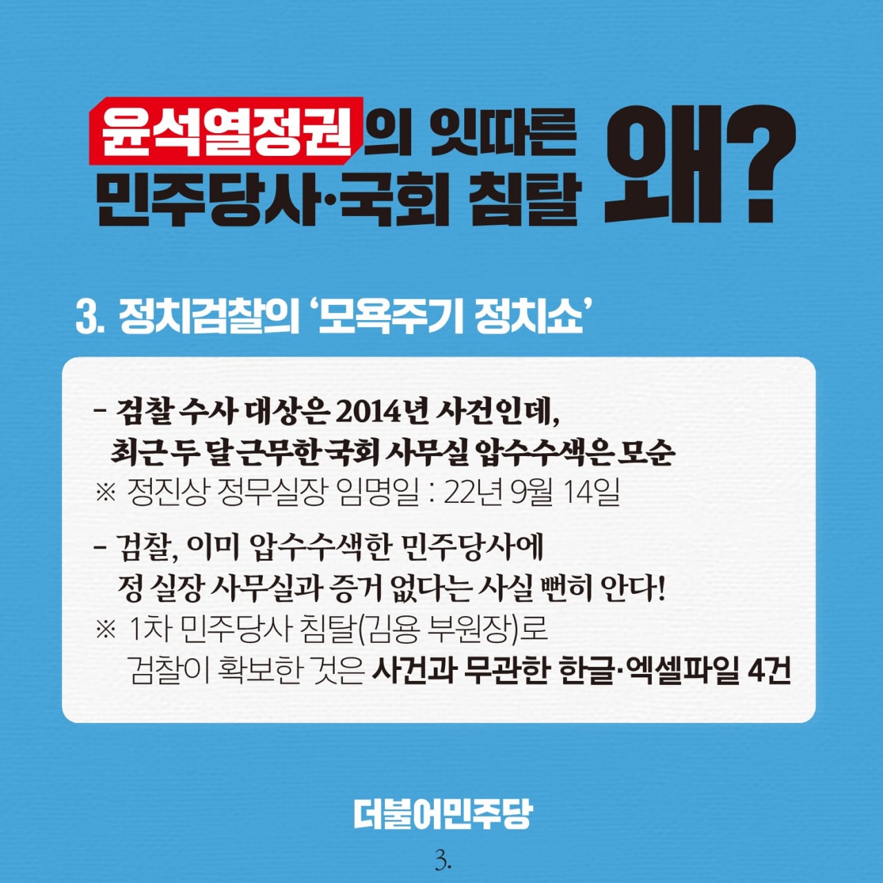 윤석열 정권의 잇따른 민주당사·국회 침탈 왜?