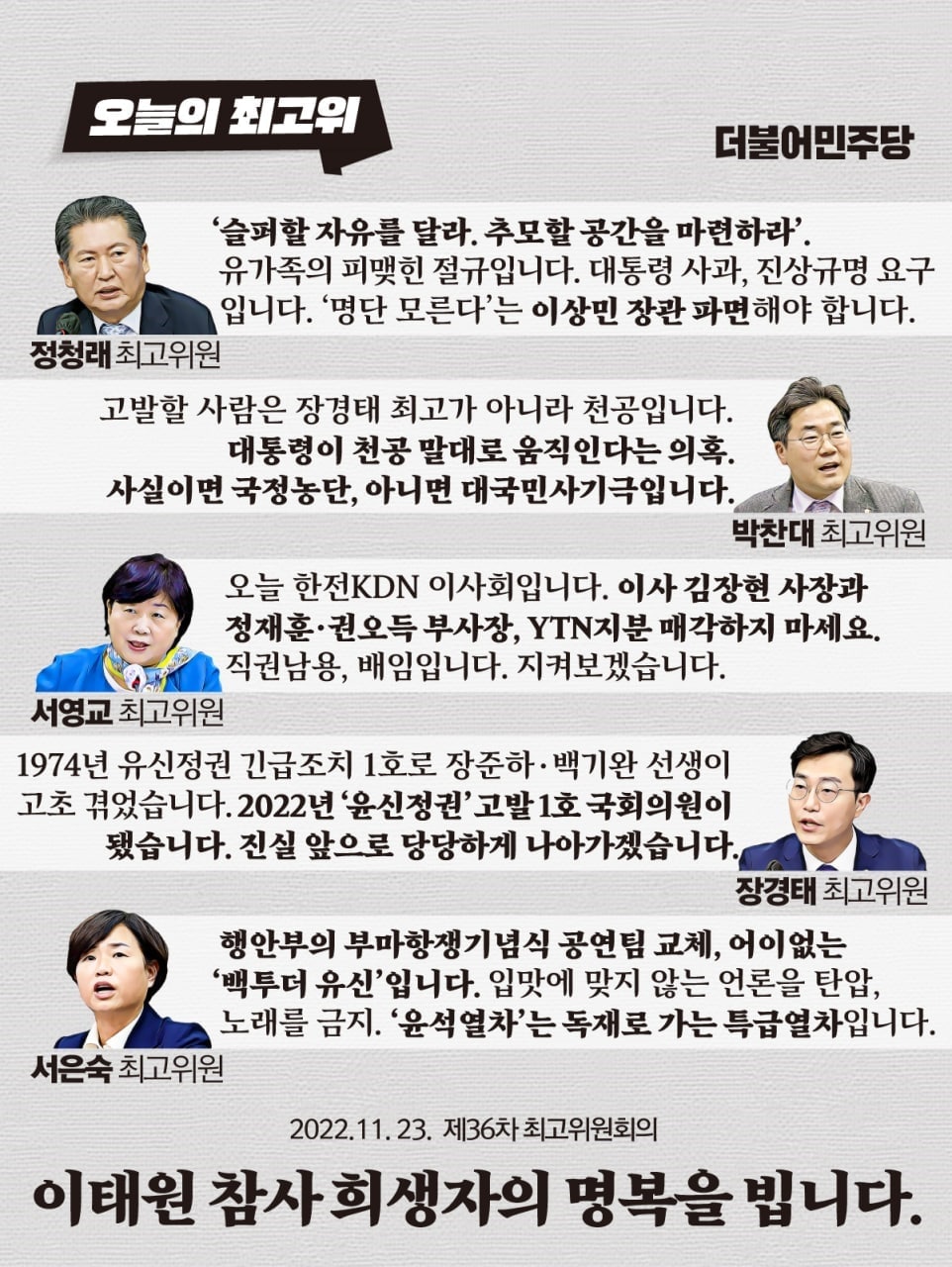 22.11.23 오늘의 한마디, 오늘의 최고위
