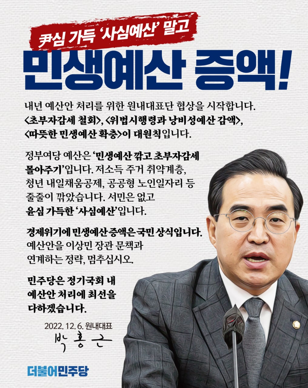 尹심 가득 '사심예산' 말고 민생예산 증액!