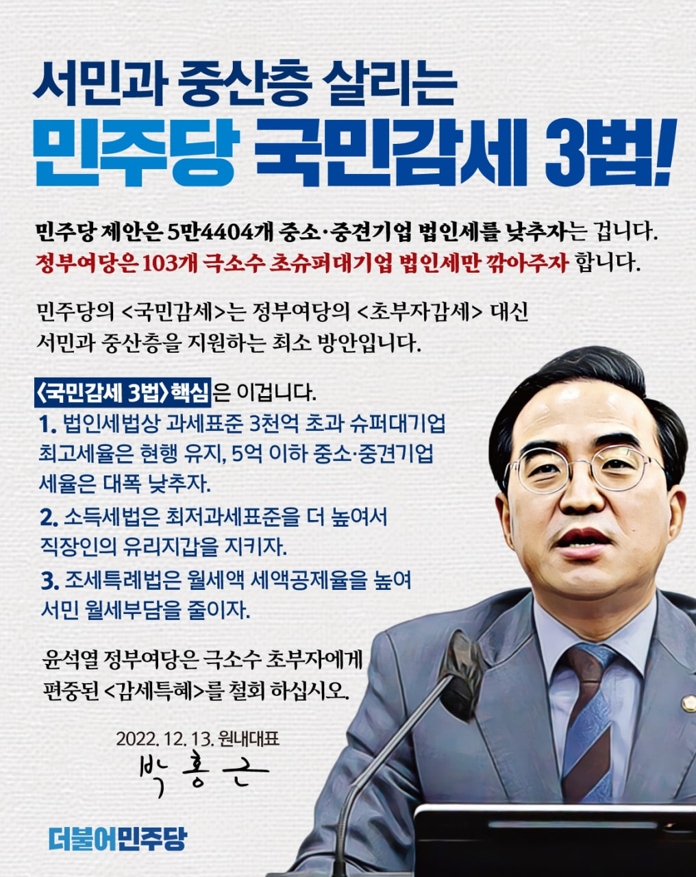 서민과 중산층 살리는 민주당 국민감세 3법!