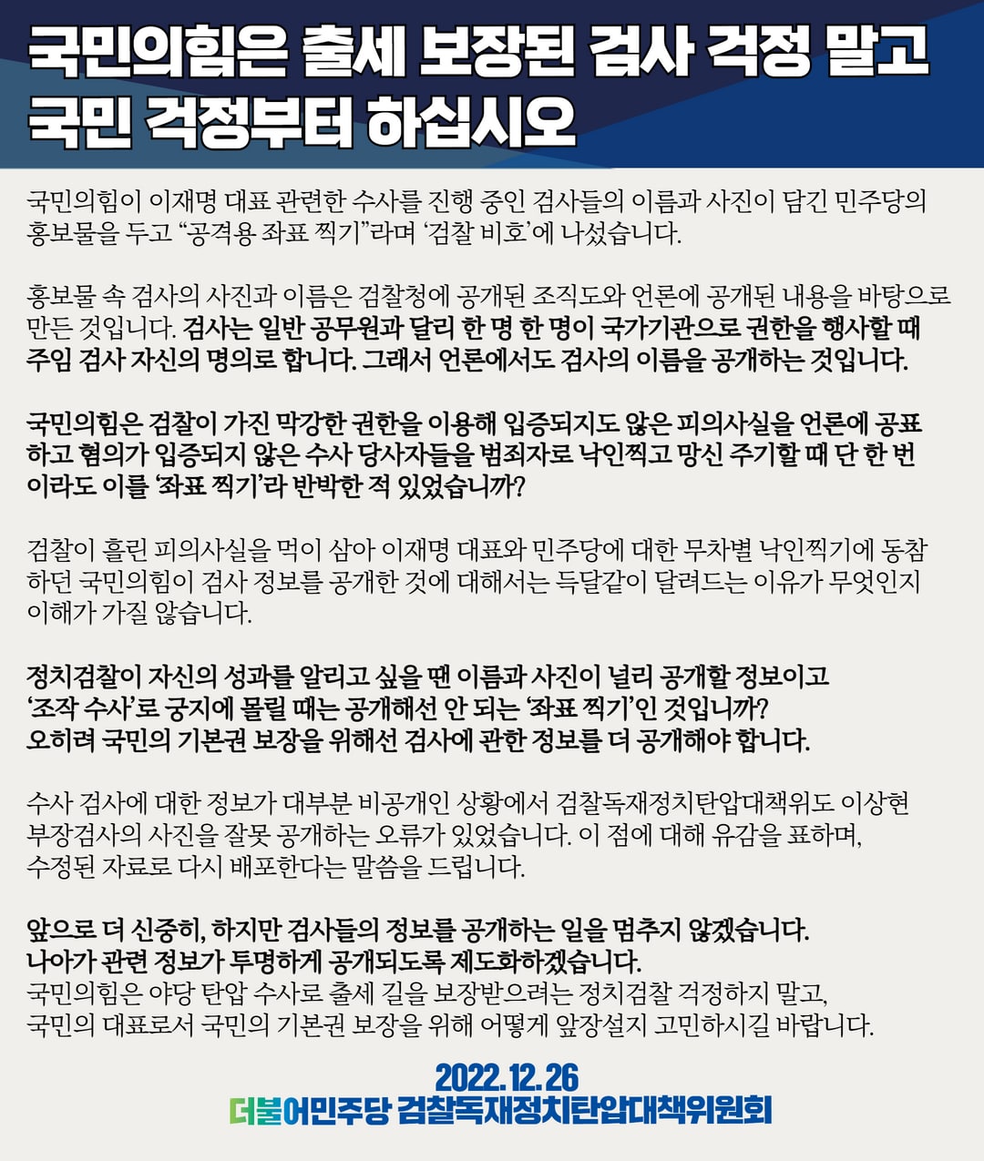국민의힘은 출세 보장된 검사 걱정 말고 국민 걱정부터 하십시오
