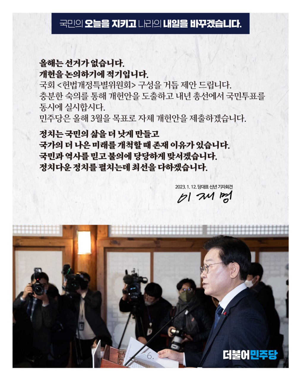 [이재명 당대표 2023 신년기자회견] 국민의 오늘을 지키고 나라의 내일을 바꾸겠습니다