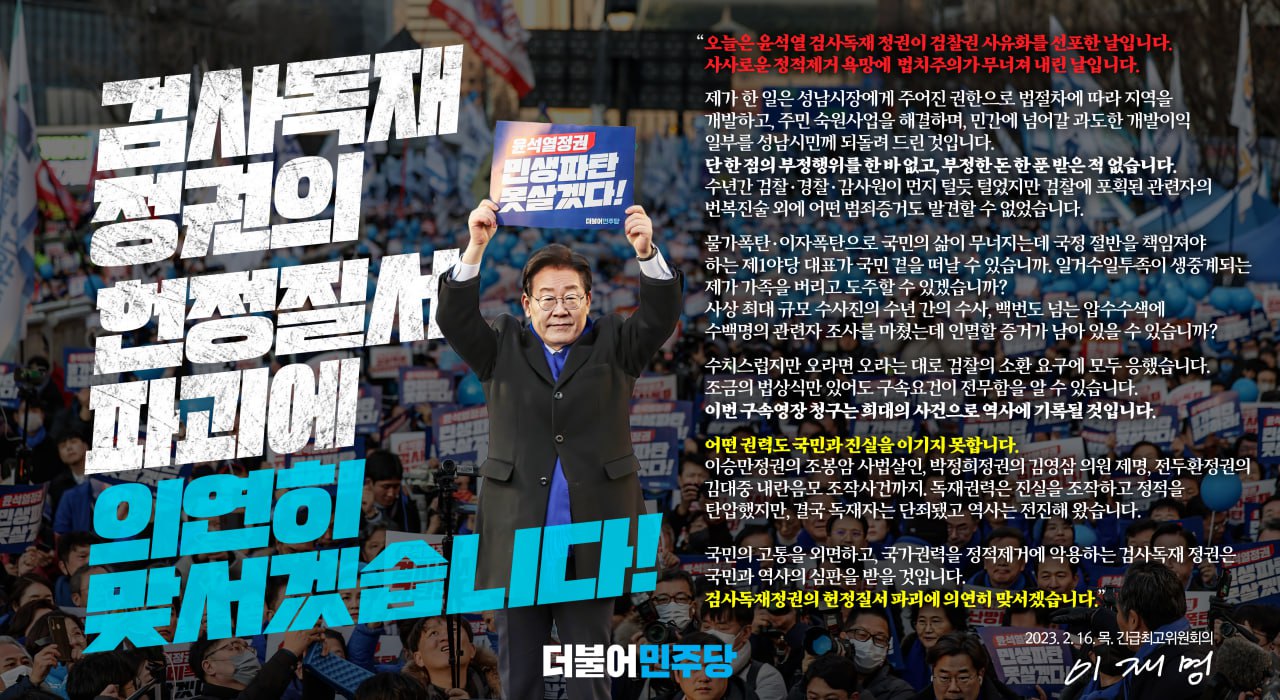 "검사독재정권의 헌정질서 파괴에 의연하게 맞서겠습니다."
