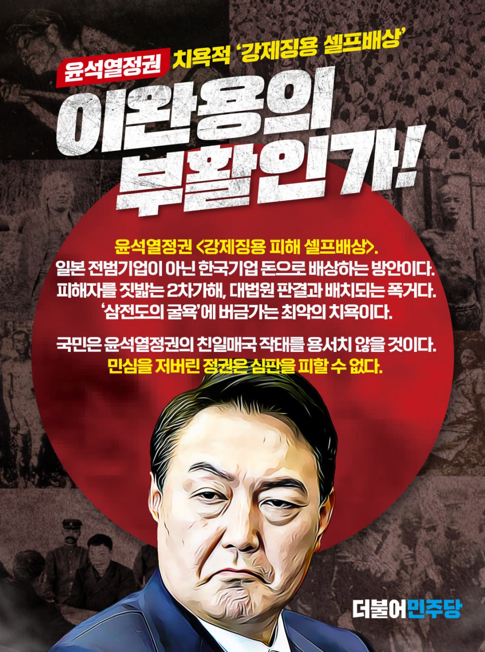 윤석열정권 치욕적 '강제징용 셀프배상' 이완용의 부활인가!