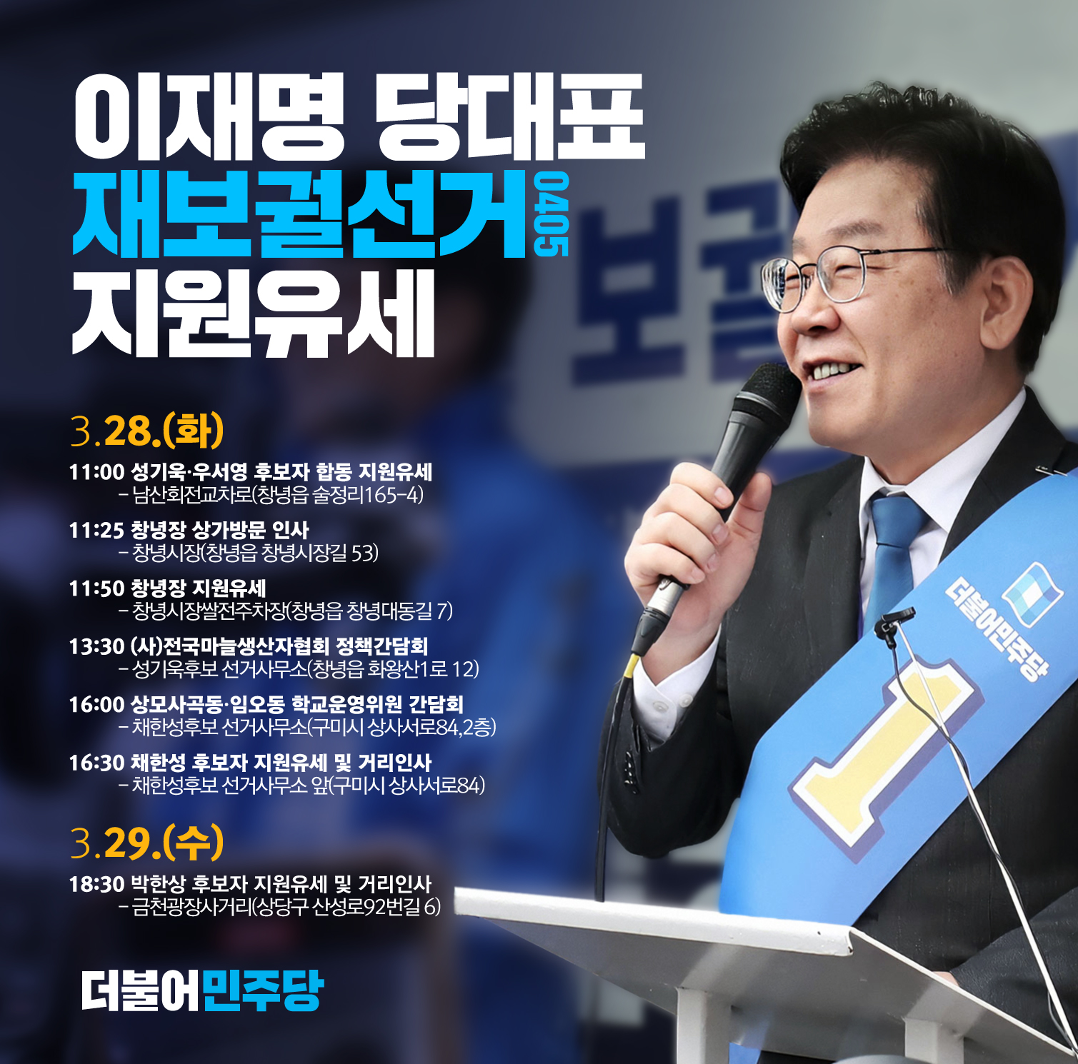 이재명 당대표 재보궐선거 지원유세 일정