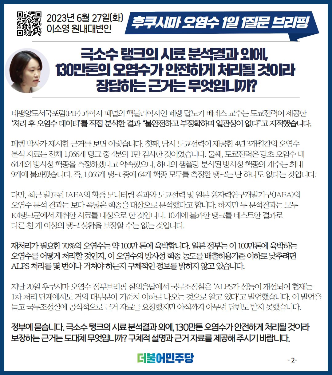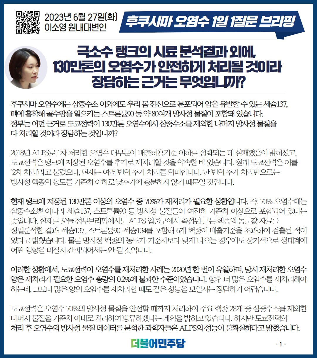 23.06.27 후쿠시마 오염수 1일1질문 브리핑