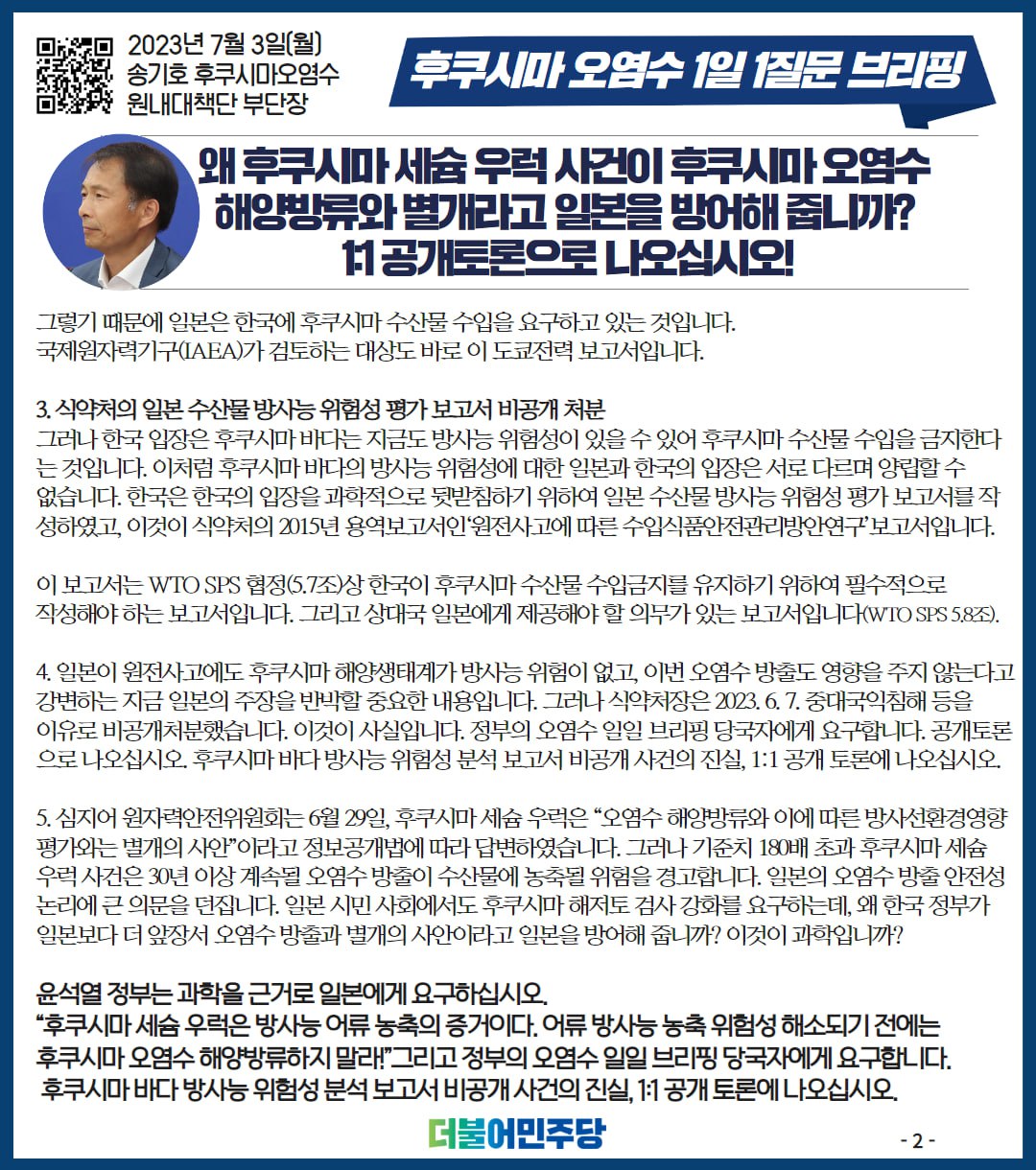 23.7.3 후쿠시마 오염수 1일 1질문 브리핑