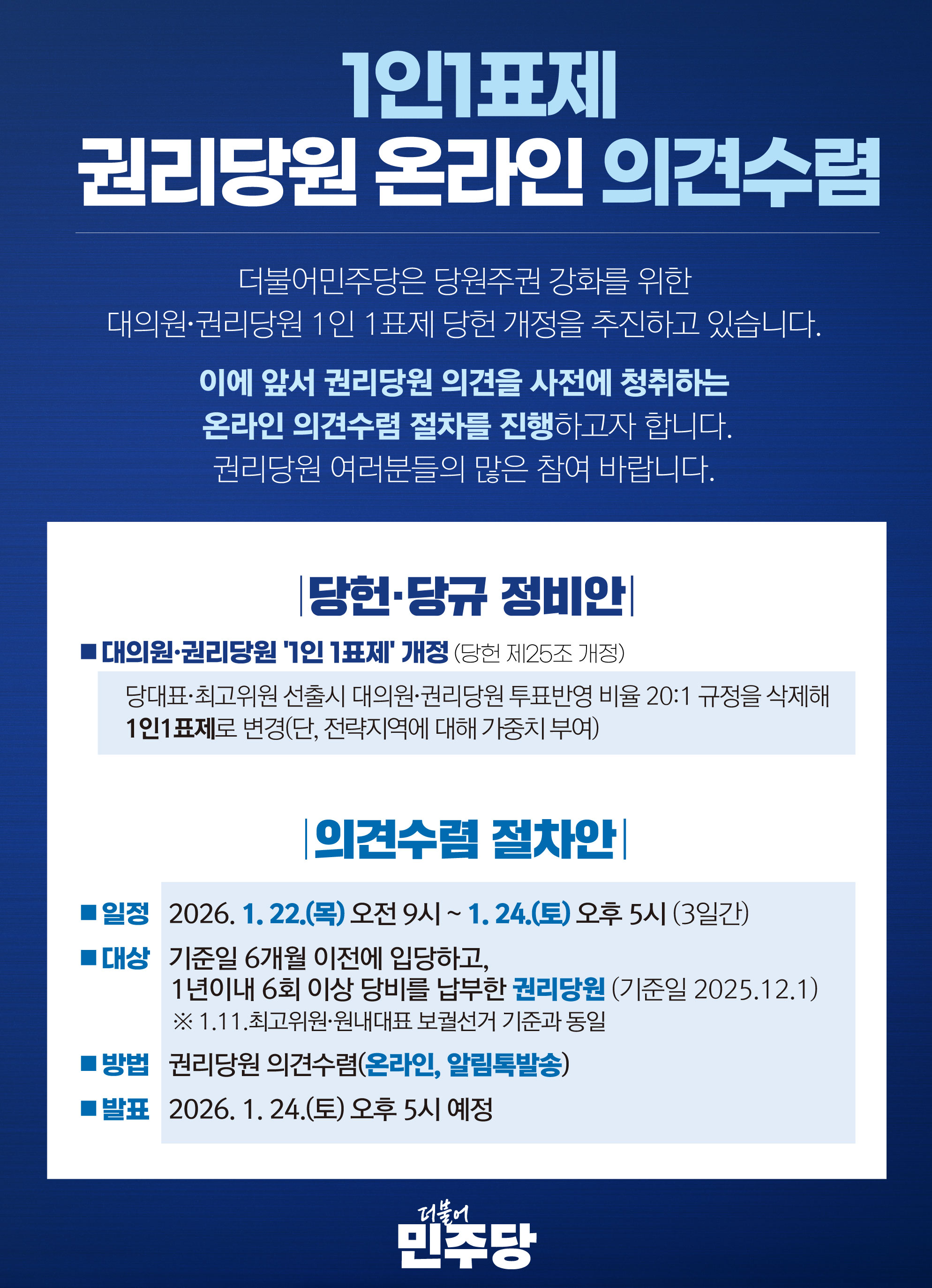 1인1표제 권리당원 온라인 의견수렴