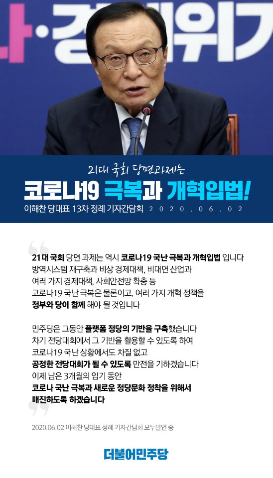 이해찬 당대표 13차 정례 기자간담회 "코로나19 극복과 개혁입법!"