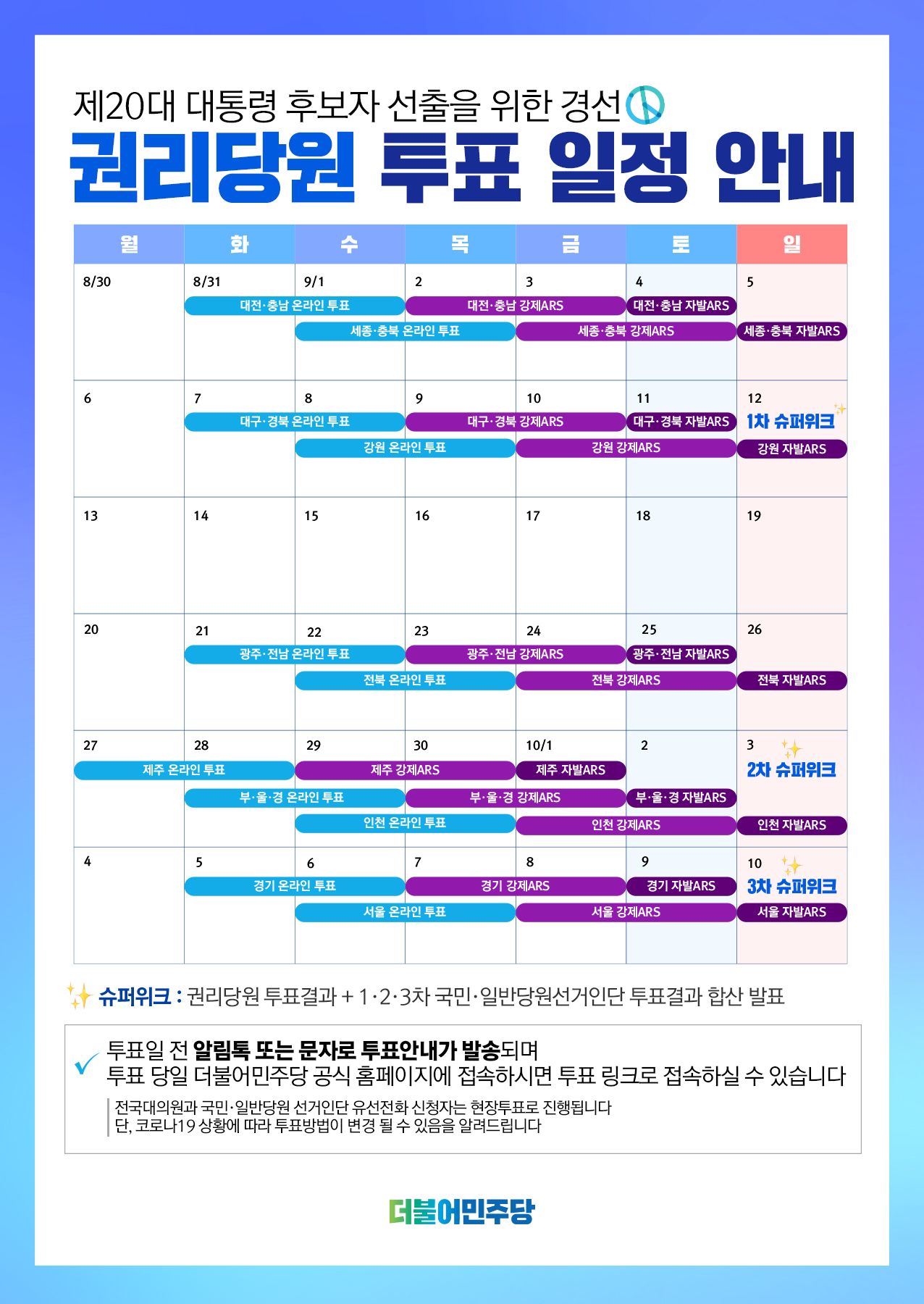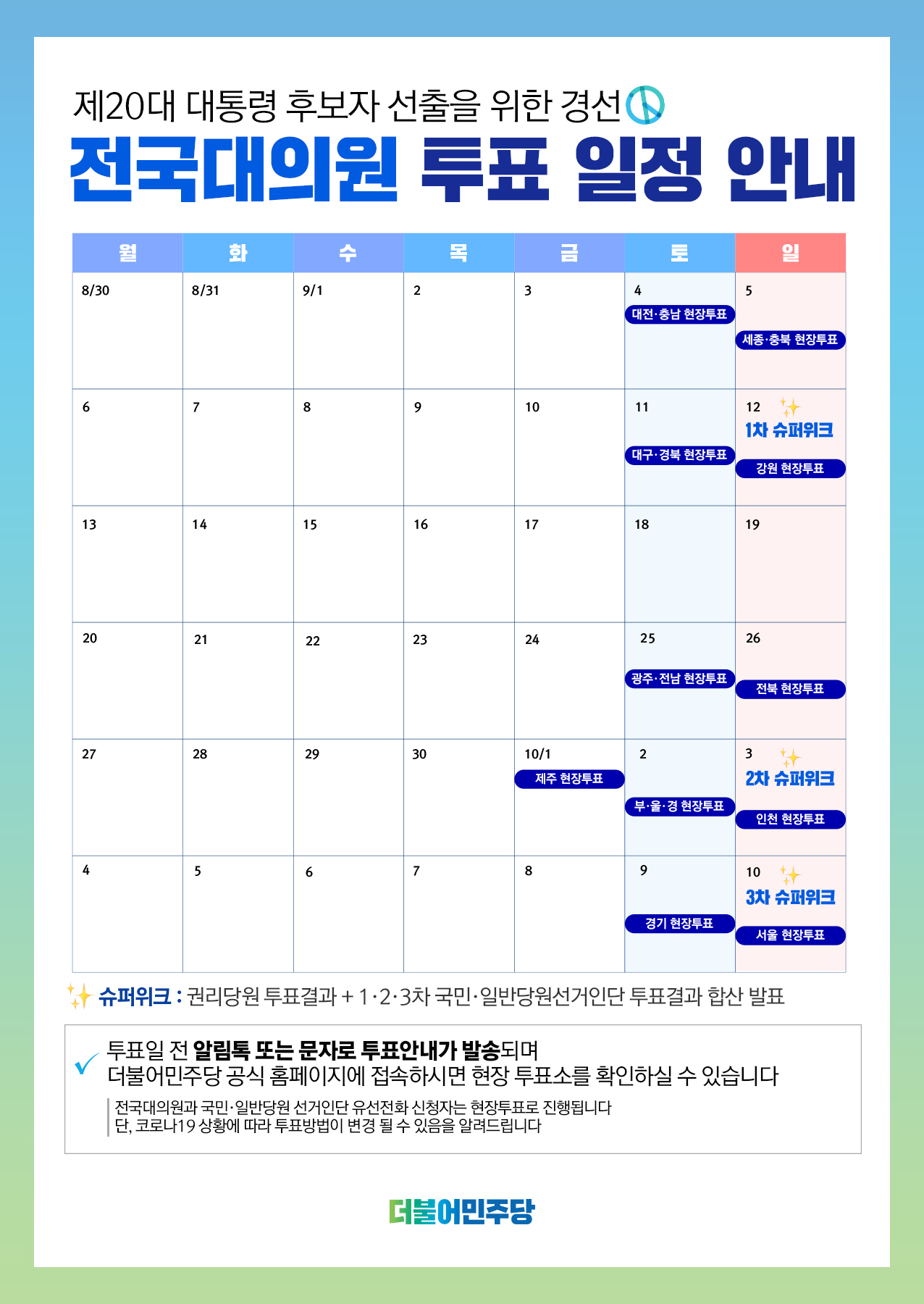 제20대 대통령 후보자 선출을 위한 경선 '선거인단 별 투표일 안내'