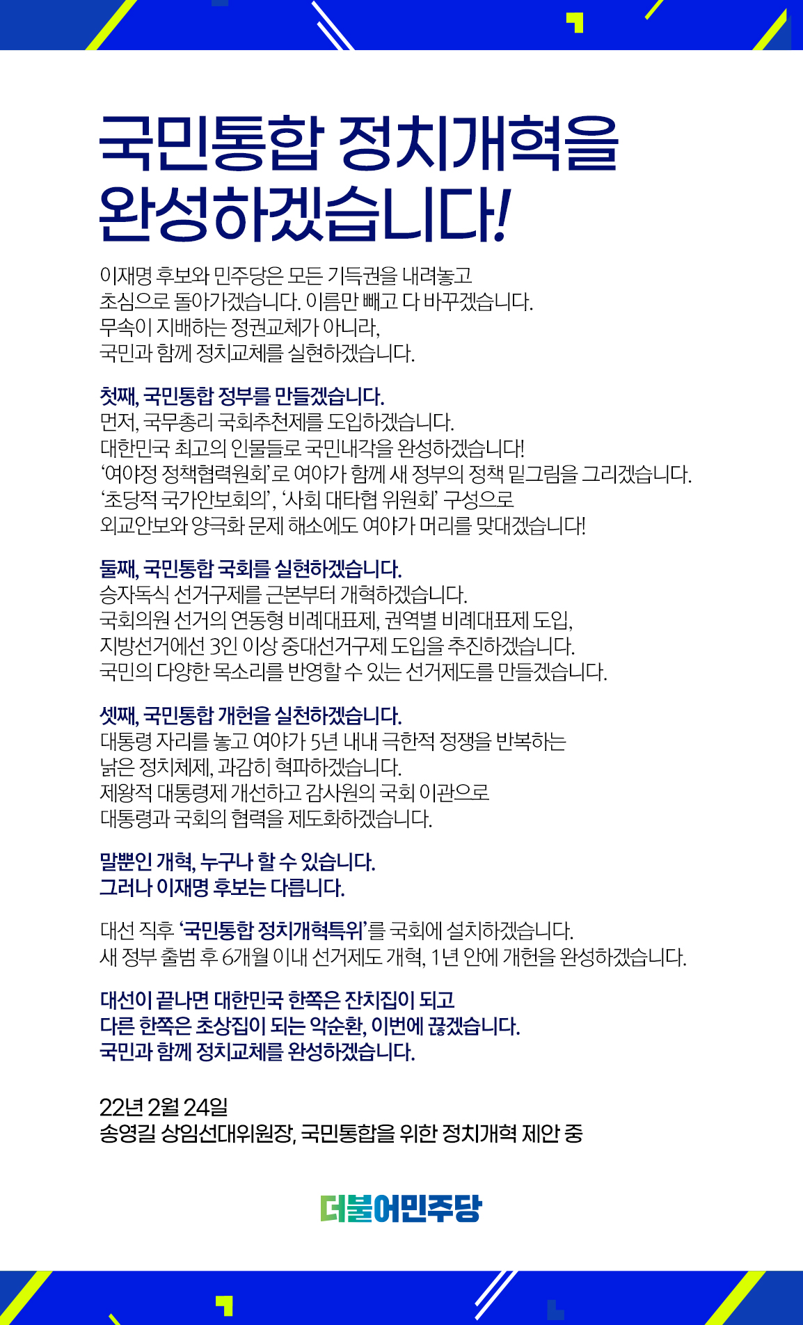 국민통합 정치개혁을 완성하겠습니다! - 송영길 -