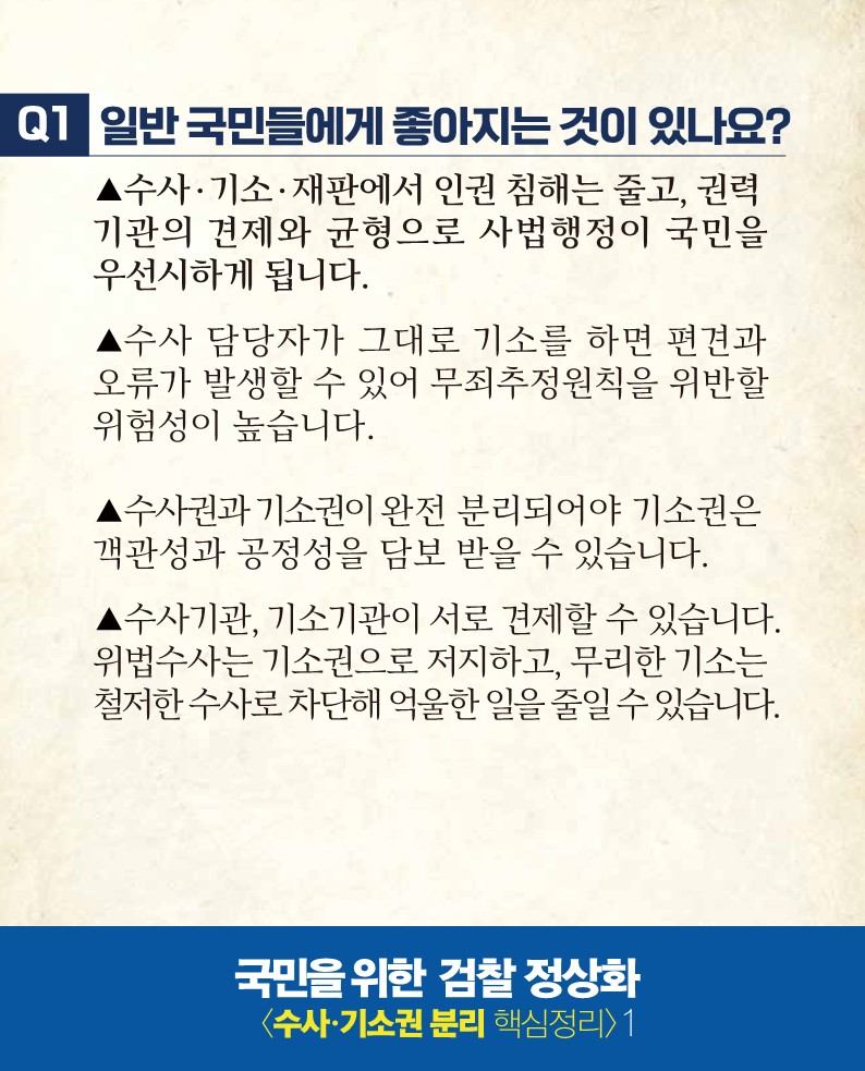 국민을 위한 검찰 정상화 - 수사·기소권 분리 핵심정리